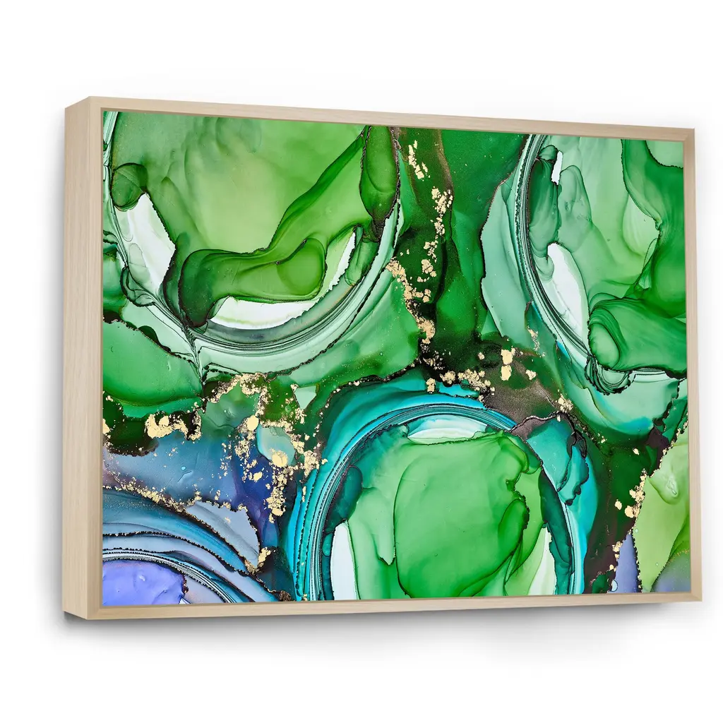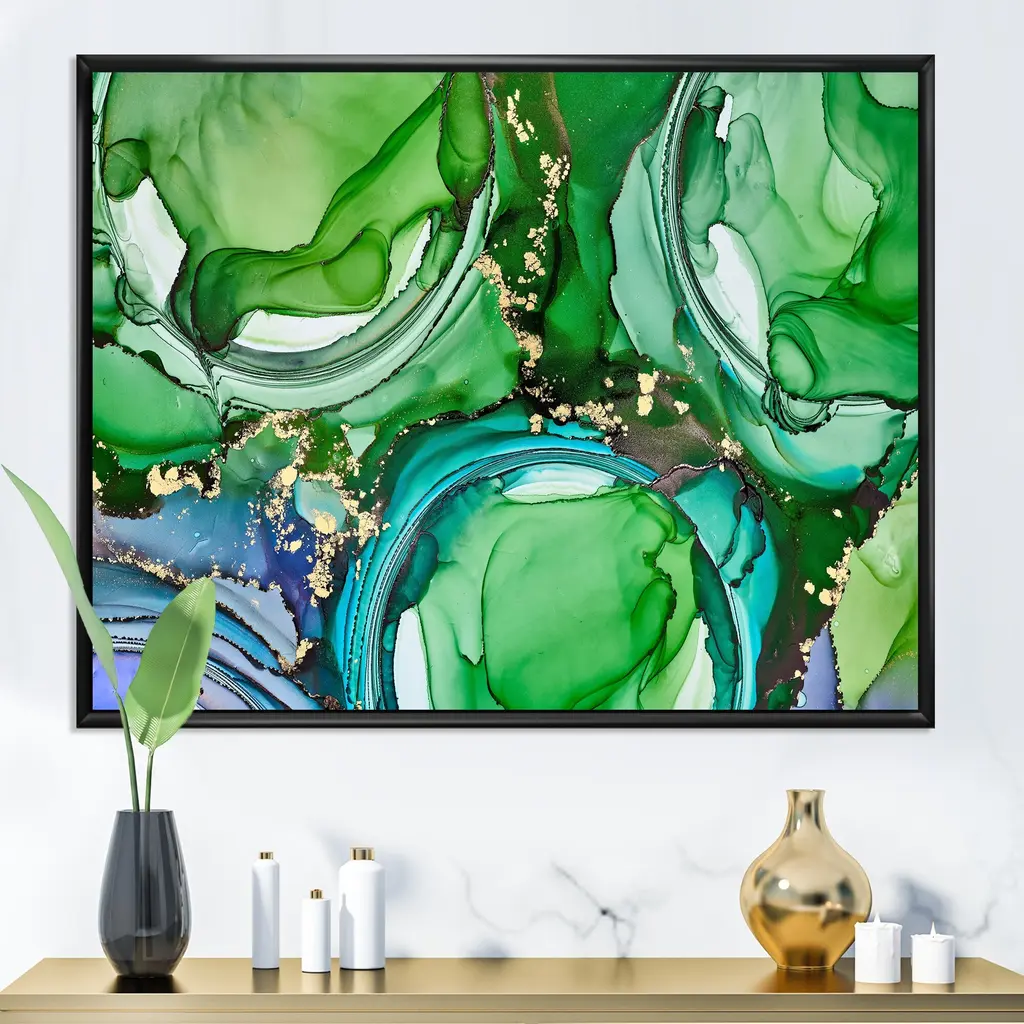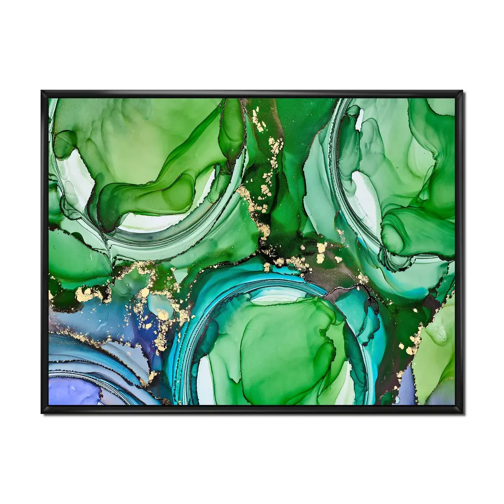 This beautiful Green Luxury Abstract Fluid Art Framed Canvas Art is printed using the highest quality fade-resistant ink on canvas. Every one of our fine art giclee canvas prints is printed on premium quality canvas, using the finest quality inks which will not fade over time. Each giclee print is stretched tightly over a 1-inch wood sub frame ensuring the canvas is taught and does not buckle. The canvas print is inserted into a wood floating frame. All of our Framed canvas prints are carefully packaged with corner protection, fragile labeling and sturdy boxes to ensure safe delivery. Every framed canvas print arrives ready to hang on the wall, with the hanging kits included. This framed art print is available in many different color frames. Features: - Style : Modern & Contemporary - Subject : Abstract, - Color : Green - Premium quality cotton canvas. - Arrives ready to hang on the wall - Easy to Hang