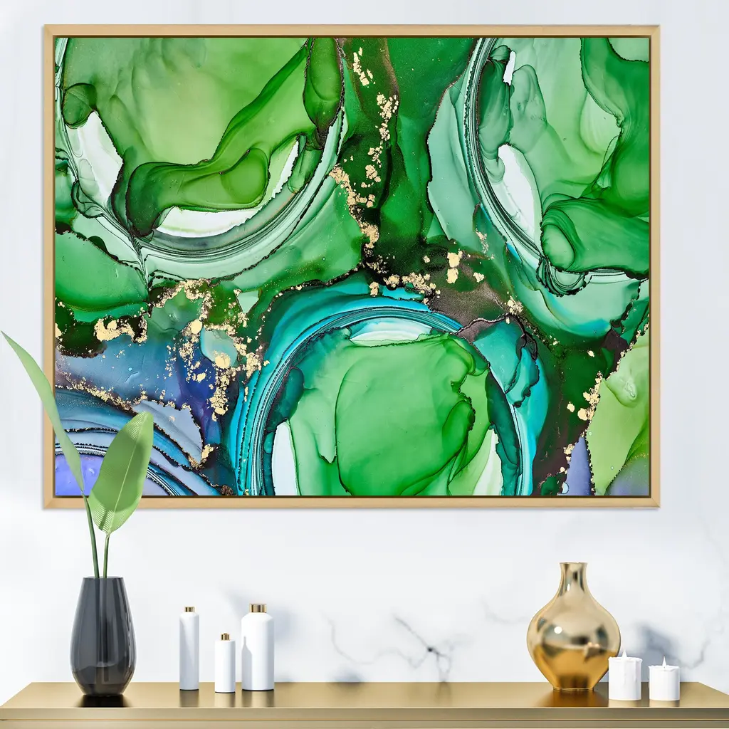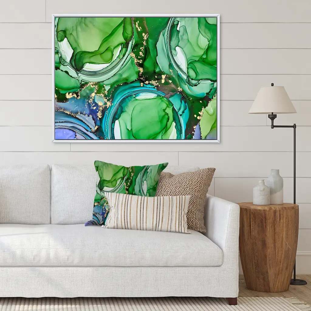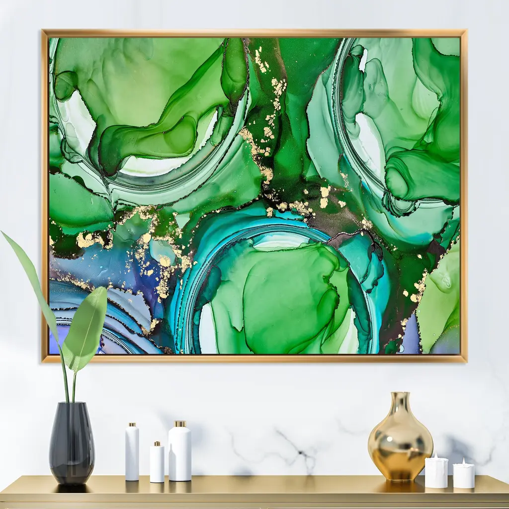 This beautiful Green Luxury Abstract Fluid Art Framed Canvas Art is printed using the highest quality fade-resistant ink on canvas. Every one of our fine art giclee canvas prints is printed on premium quality canvas, using the finest quality inks which will not fade over time. Each giclee print is stretched tightly over a 1-inch wood sub frame ensuring the canvas is taught and does not buckle. The canvas print is inserted into a wood floating frame. All of our Framed canvas prints are carefully packaged with corner protection, fragile labeling and sturdy boxes to ensure safe delivery. Every framed canvas print arrives ready to hang on the wall, with the hanging kits included. This framed art print is available in many different color frames. Features: - Style : Modern & Contemporary - Subject : Abstract, - Color : Green - Premium quality cotton canvas. - Arrives ready to hang on the wall - Easy to Hang
