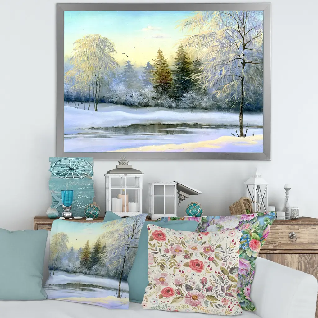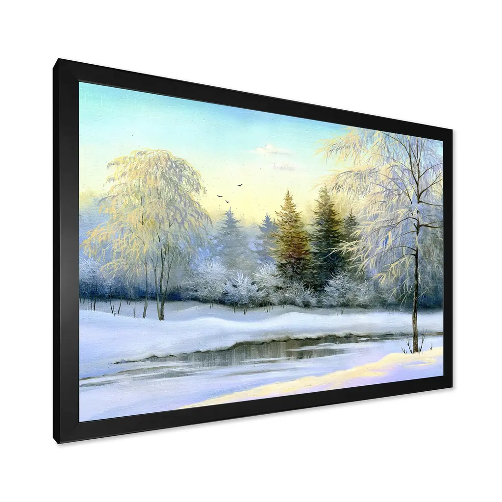 This beautiful Green Trees In Beautiful Winter Landscape Framed wall Art is printed using the highest quality fade resistant ink on canvas. Every one of our Framed Giclee Prints is printed on premium quality canvas, using the finest quality inks which will not fade over time and then mounted and framed on a 1.5 inch wide frame. This framed art print is available in many different color frames. All of our framed art prints are carefully packaged with corner protectors, fragile labeling, and sturdy boxes to ensure a safe delivery. Every framed art arrives ready to hang on the wall, with the hanging kit included. Features: - Style : Traditional - Subject : Landscapes - Color : White - Premium quality cotton canvas mounted. - Available in several frame colors. - Arrives with instructions and hanging kit