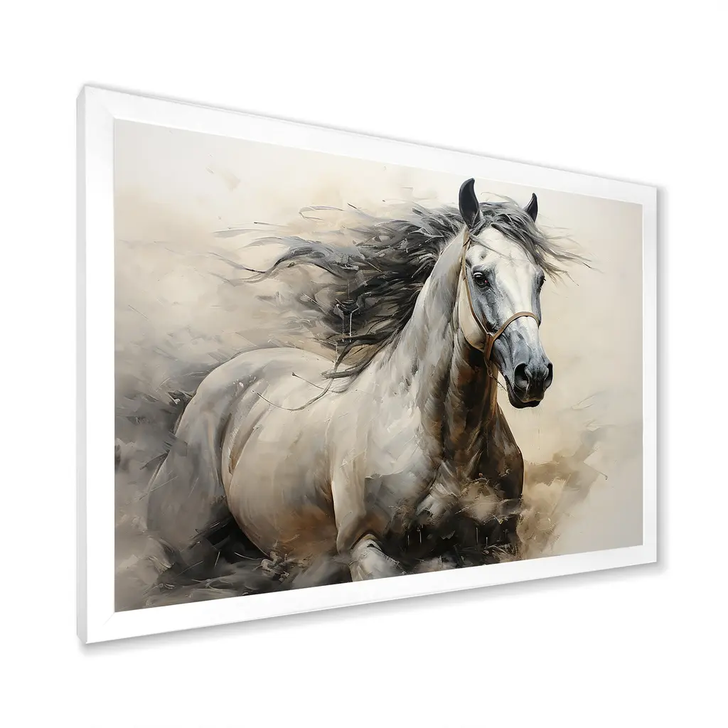 Designart "Hooves In Harmony Horse I" Animals Horse Framed Wall Decor - 20 In. Wide X 12 In. High - White