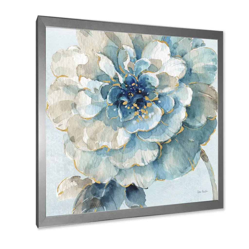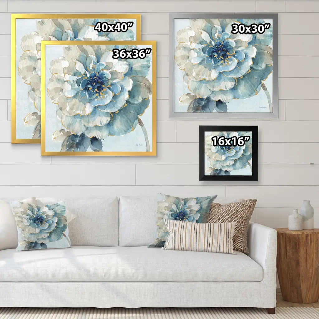 Designart "Indigold Watercolor Flower Ii" Farmhouse Framed Art Print - 16 In. Wide X 16 In. High - Black