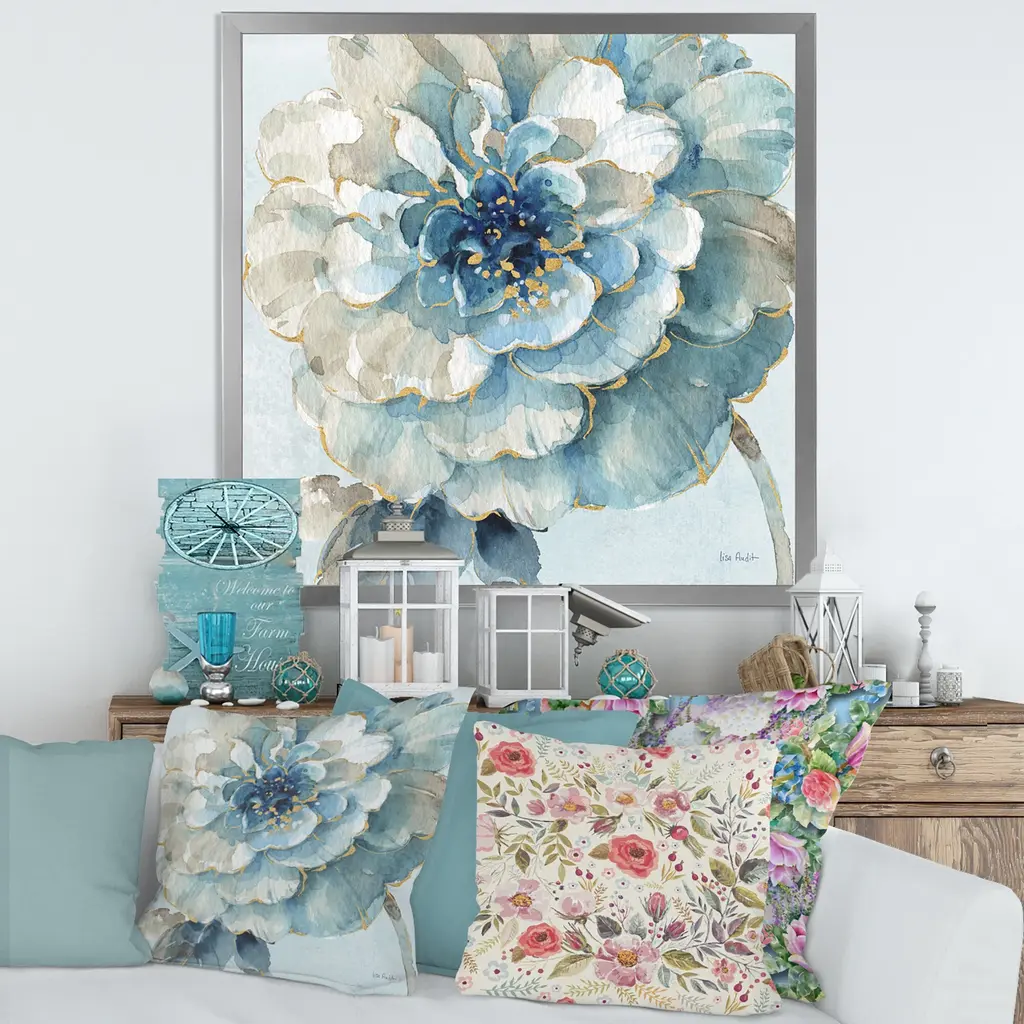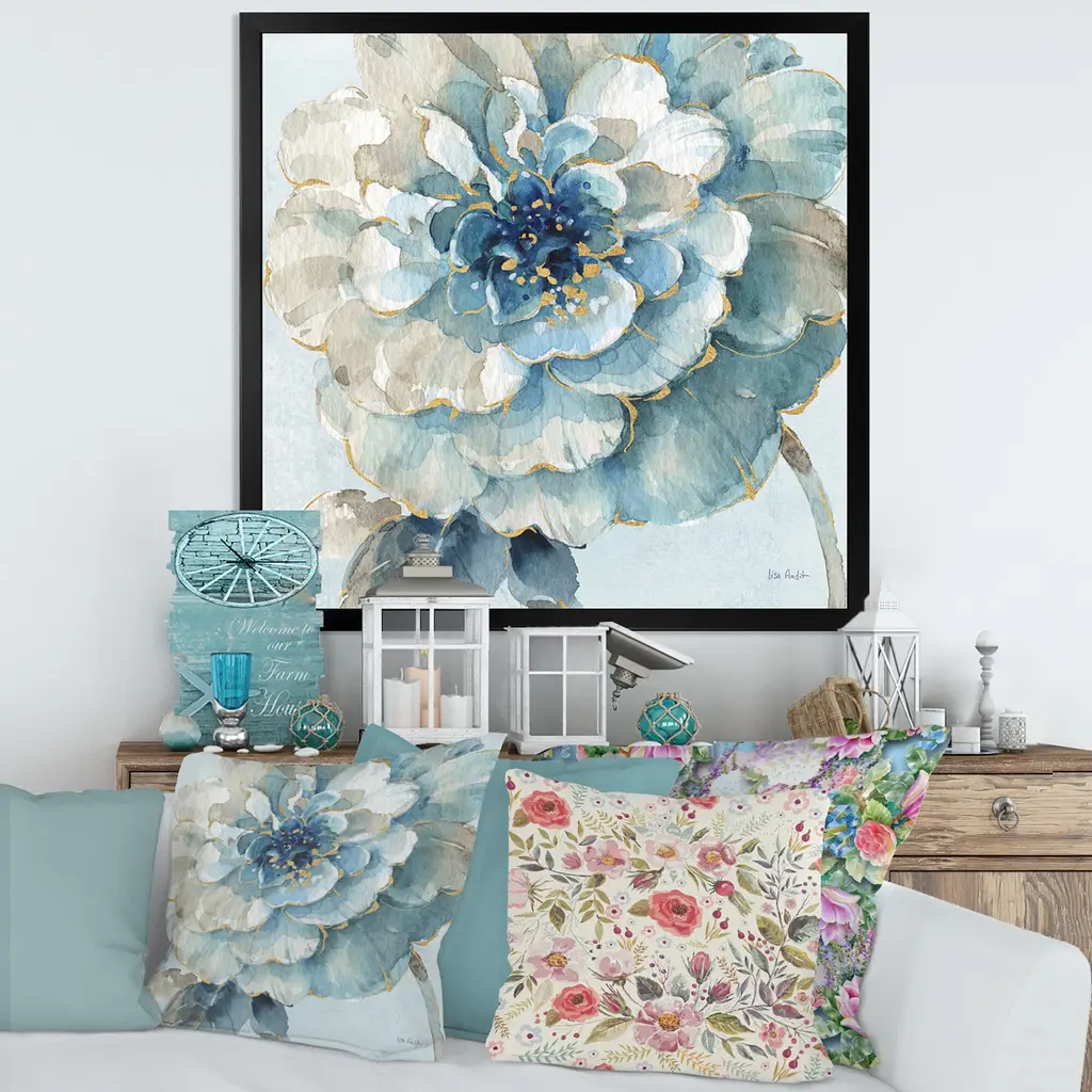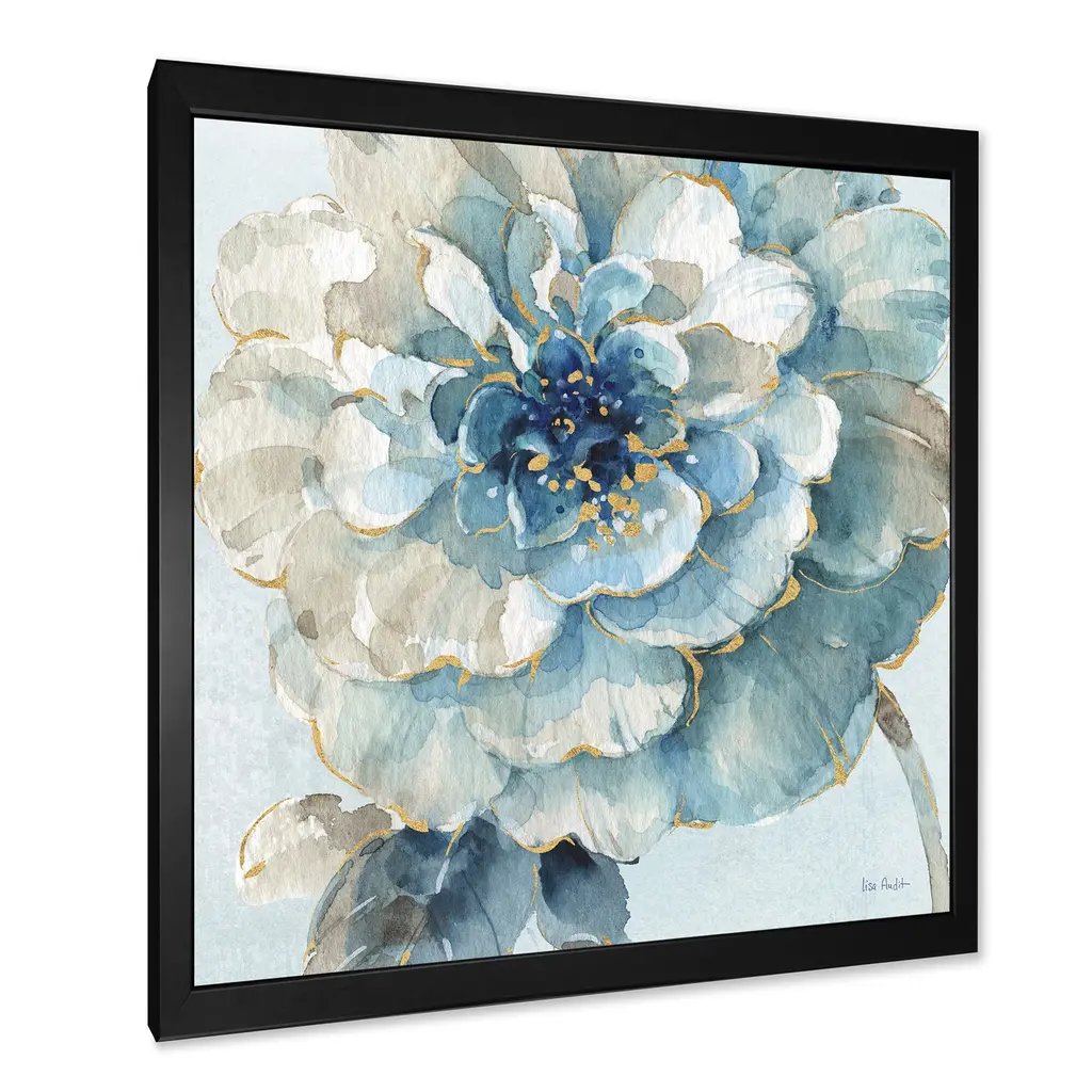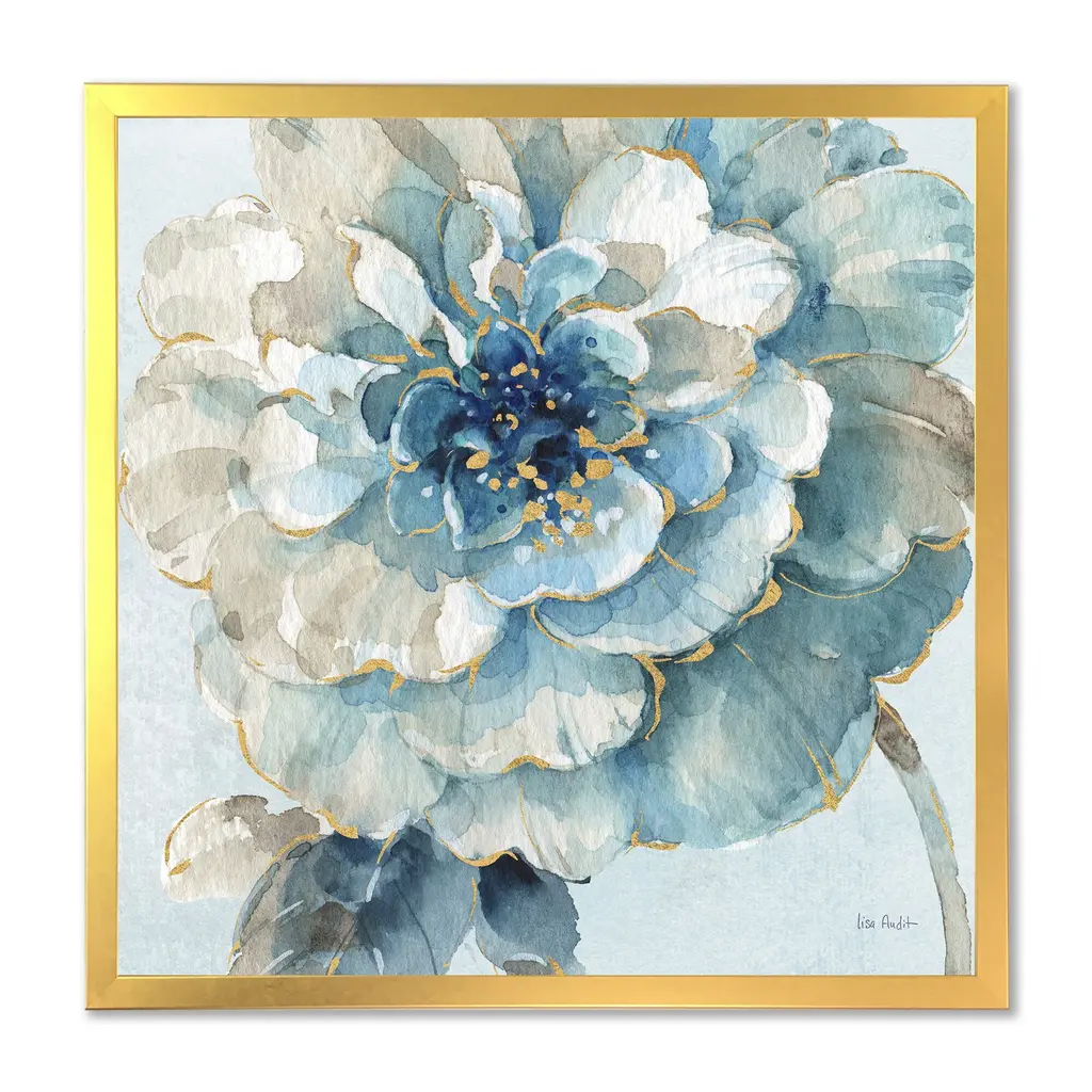 Designart "Indigold Watercolor Flower Ii" Farmhouse Framed Art Print - 30 In. Wide X 30 In. High - Gold