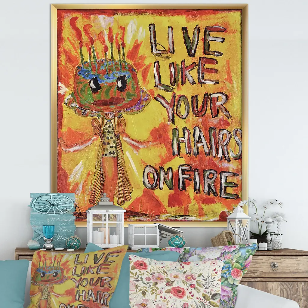 Designart "Live Like Your Hair's On Fire" Cottage Framed Art Print - 12 In. Wide X 20 In. High - Orange
