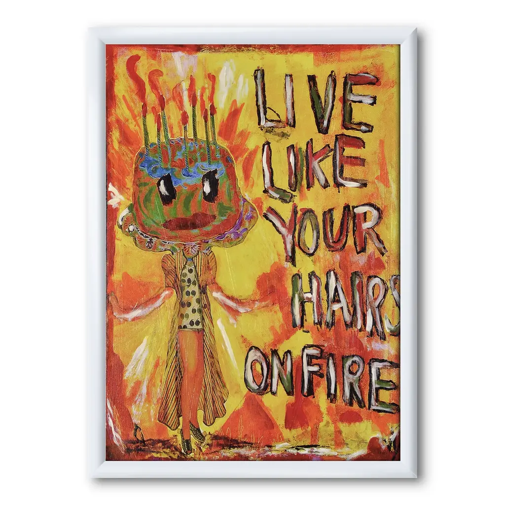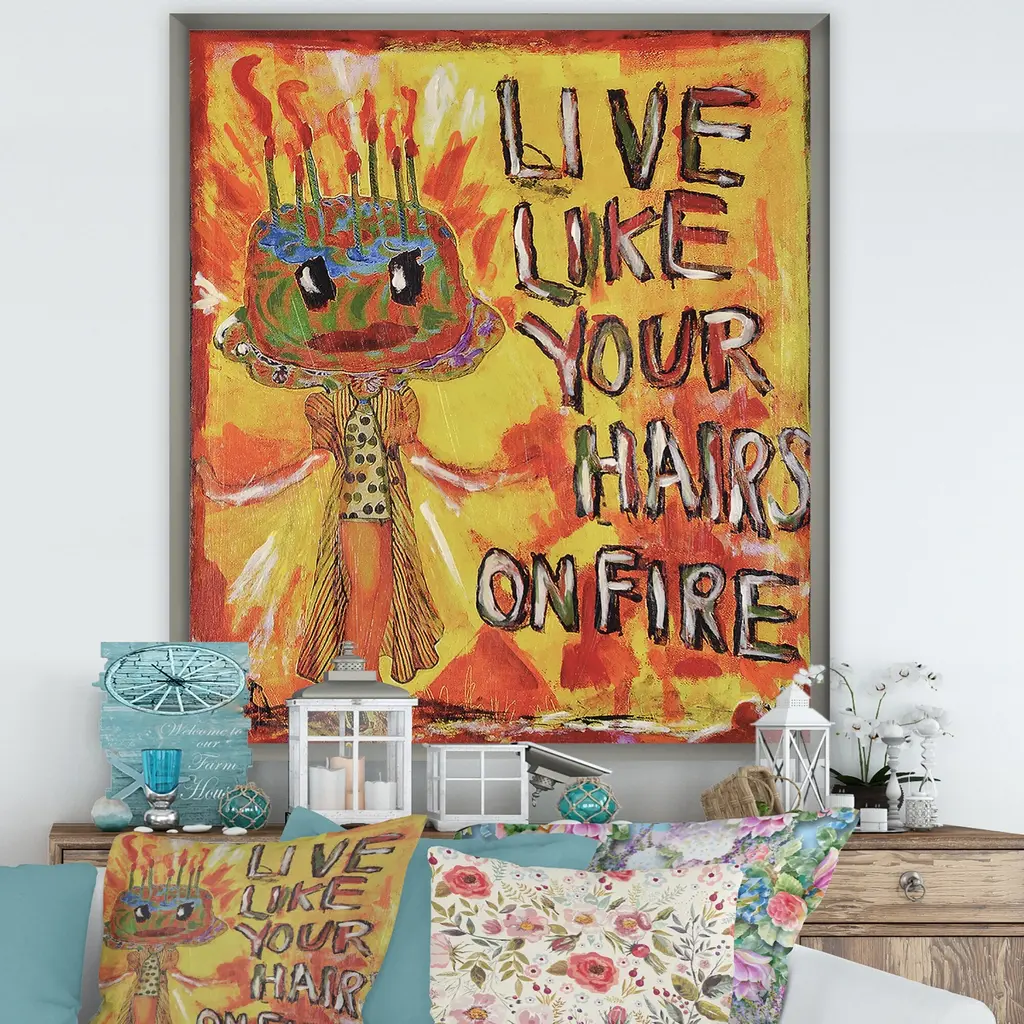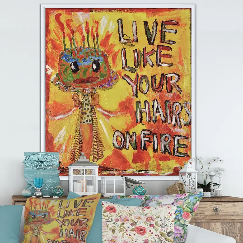 Designart "Live Like Your Hair's On Fire" Cottage Framed Art Print - 30 In. Wide X 40 In. High - Silver