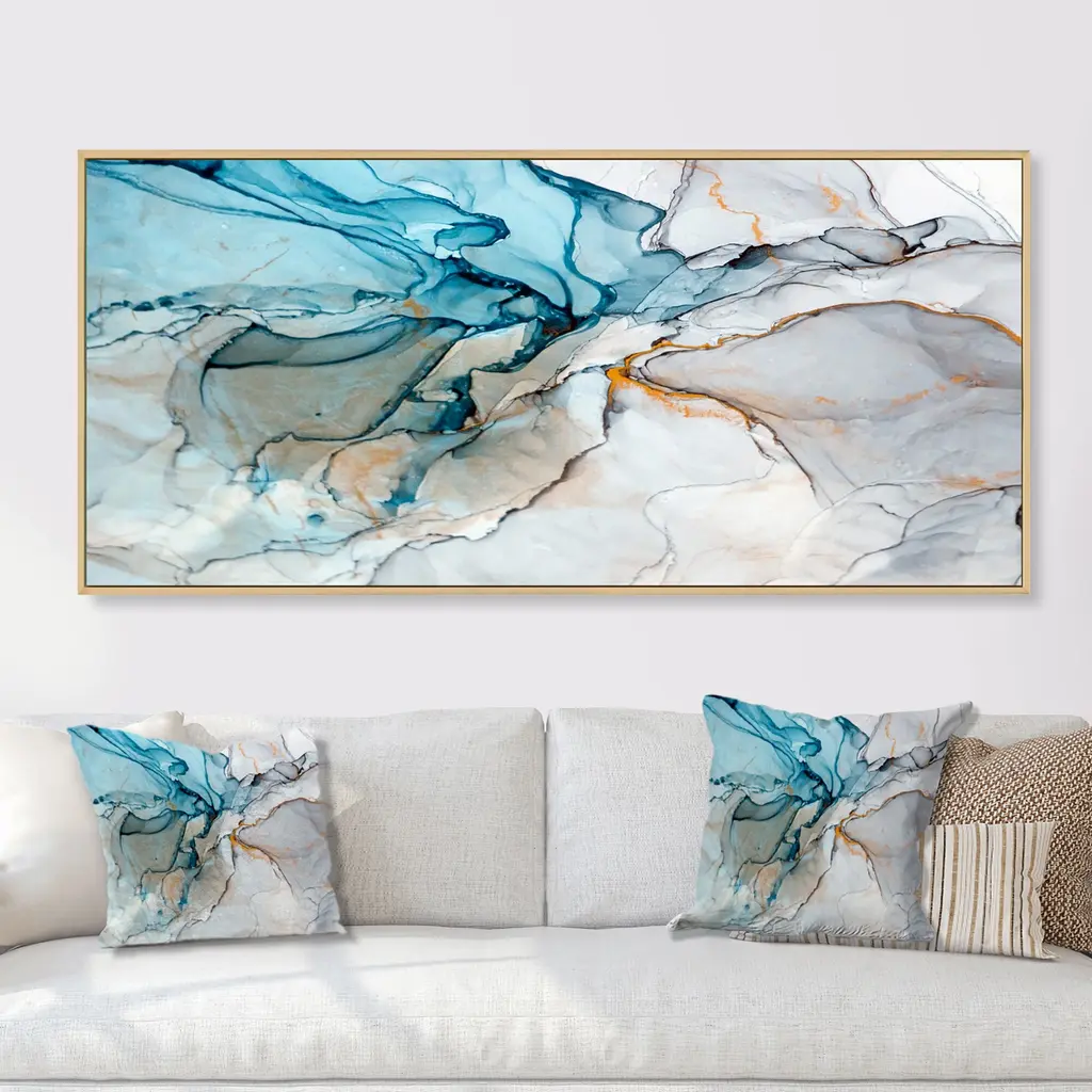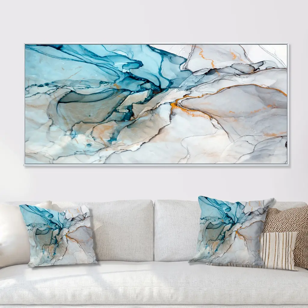 This beautiful Luxry Blue And Grey Marble Art Ripples Framed Canvas Art is printed using the highest quality fade-resistant ink on canvas. Every one of our fine art giclee canvas prints is printed on premium quality canvas, using the finest quality inks which will not fade over time. Each giclee print is stretched tightly over a 1-inch wood sub frame ensuring the canvas is taught and does not buckle. The canvas print is inserted into a wood floating frame. All of our Framed canvas prints are carefully packaged with corner protection, fragile labeling and sturdy boxes to ensure safe delivery. Every framed canvas print arrives ready to hang on the wall, with the hanging kits included. This framed art print is available in many different color frames. Features: - Style : Glam - Subject : Abstract, Abstract & Fractals - Color : Blue - Premium quality cotton canvas. - Arrives ready to hang on the wall - Easy to Hang