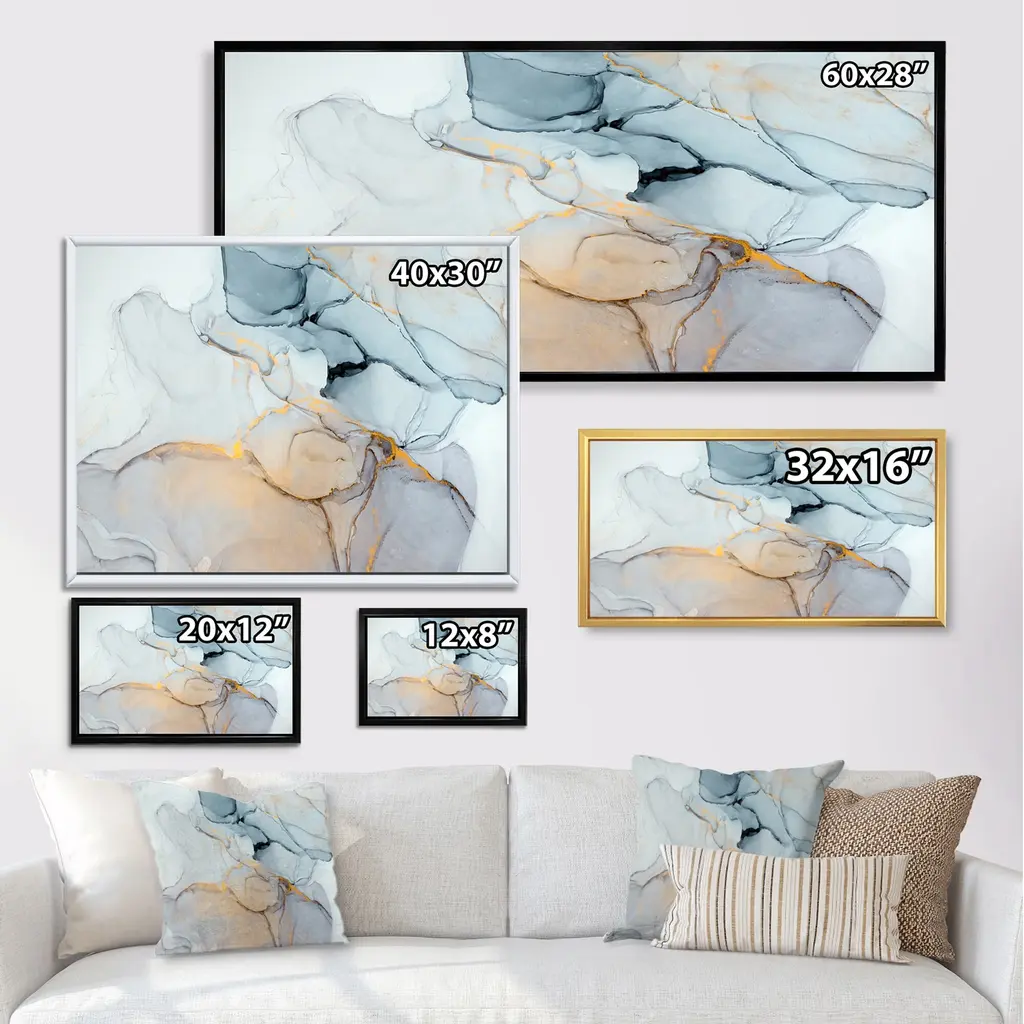 This beautiful Luxry Blue And Grey Marble Art Ripples II Framed Canvas Art is printed using the highest quality fade-resistant ink on canvas. Every one of our fine art giclee canvas prints is printed on premium quality canvas, using the finest quality inks which will not fade over time. Each giclee print is stretched tightly over a 1-inch wood sub frame ensuring the canvas is taught and does not buckle. The canvas print is inserted into a wood floating frame. All of our Framed canvas prints are carefully packaged with corner protection, fragile labeling and sturdy boxes to ensure safe delivery. Every framed canvas print arrives ready to hang on the wall, with the hanging kits included. This framed art print is available in many different color frames. Features: - Style : Glam - Subject : Abstract, Abstract & Fractals - Color : Blue - Premium quality cotton canvas. - Arrives ready to hang on the wall - Easy to Hang