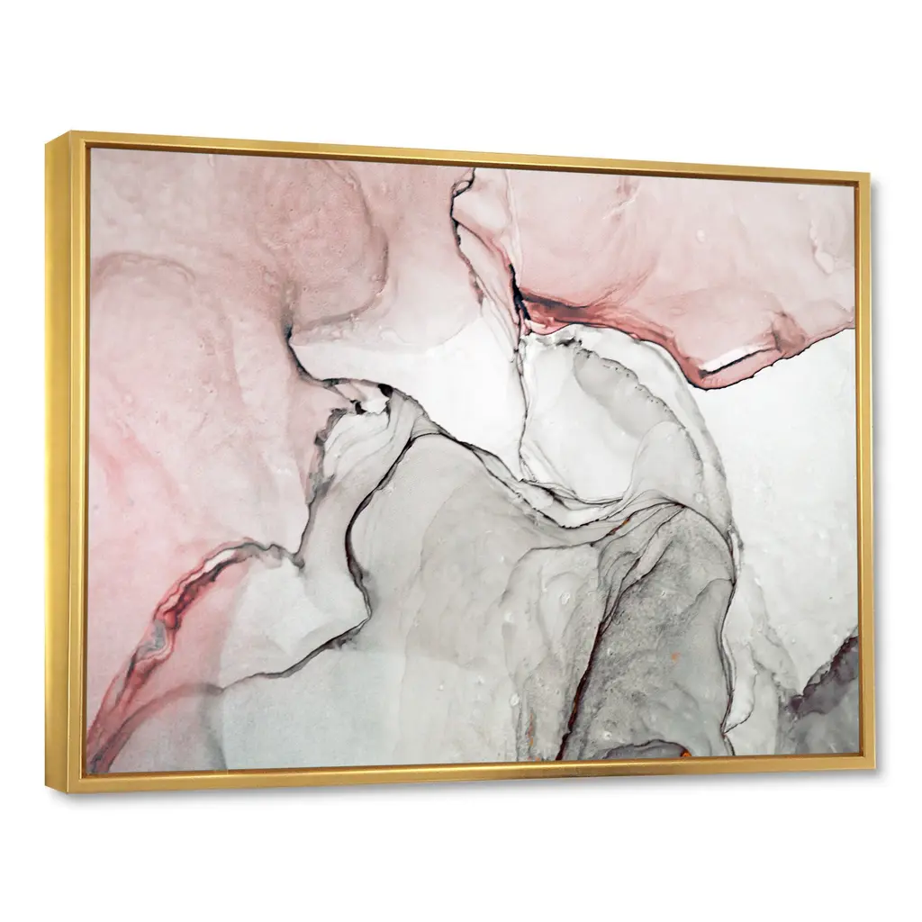 Designart "Luxury Pink Grey Marbled Flow Art Ii" Abstract Framed Canvas Wall Art - 20 In. Wide X 12 In. High - Gold