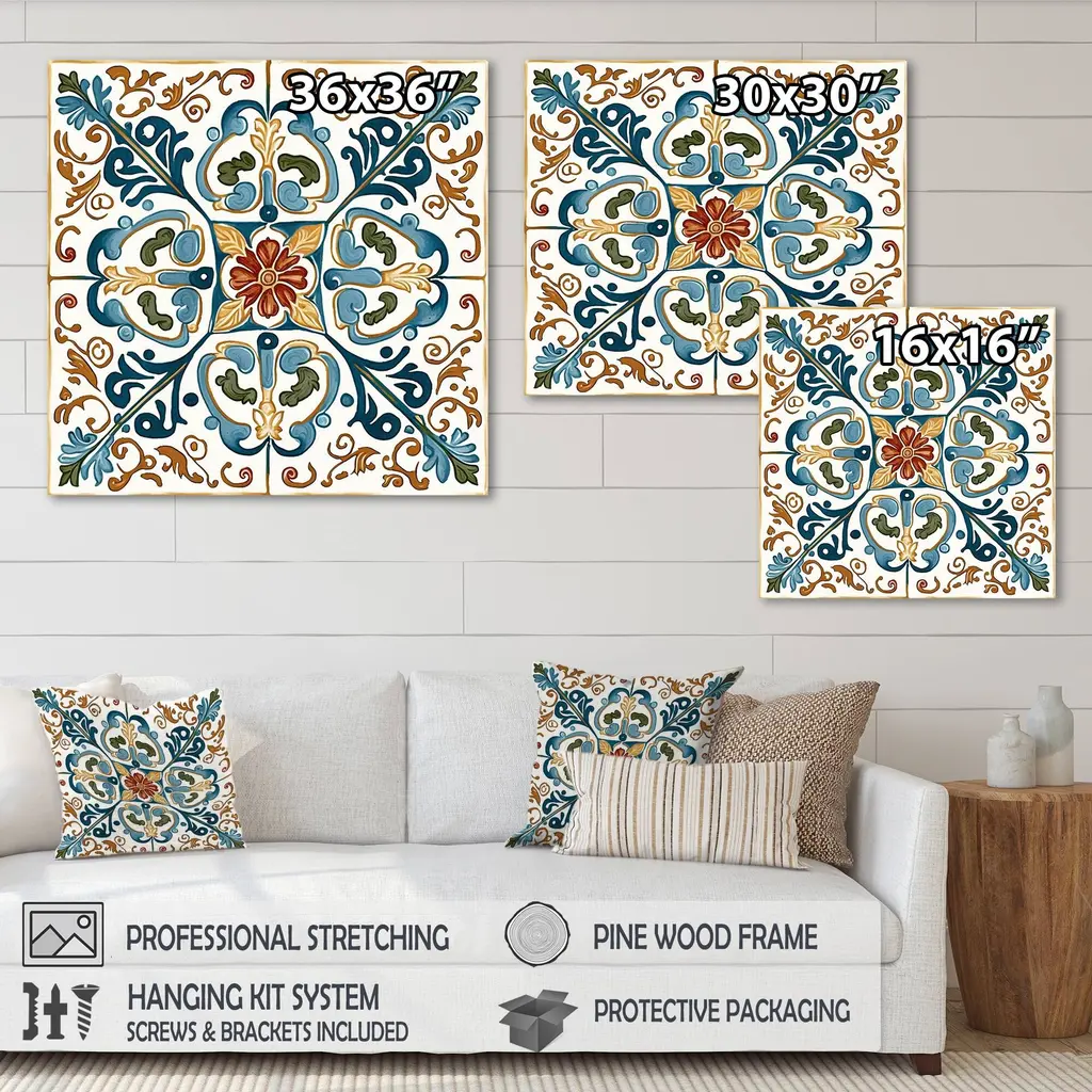 Designart "Mediterranean Tiles In Retro Blue Vi" Abstract Tile Canvas Wall Art - 24 In. Wide X 24 In. High