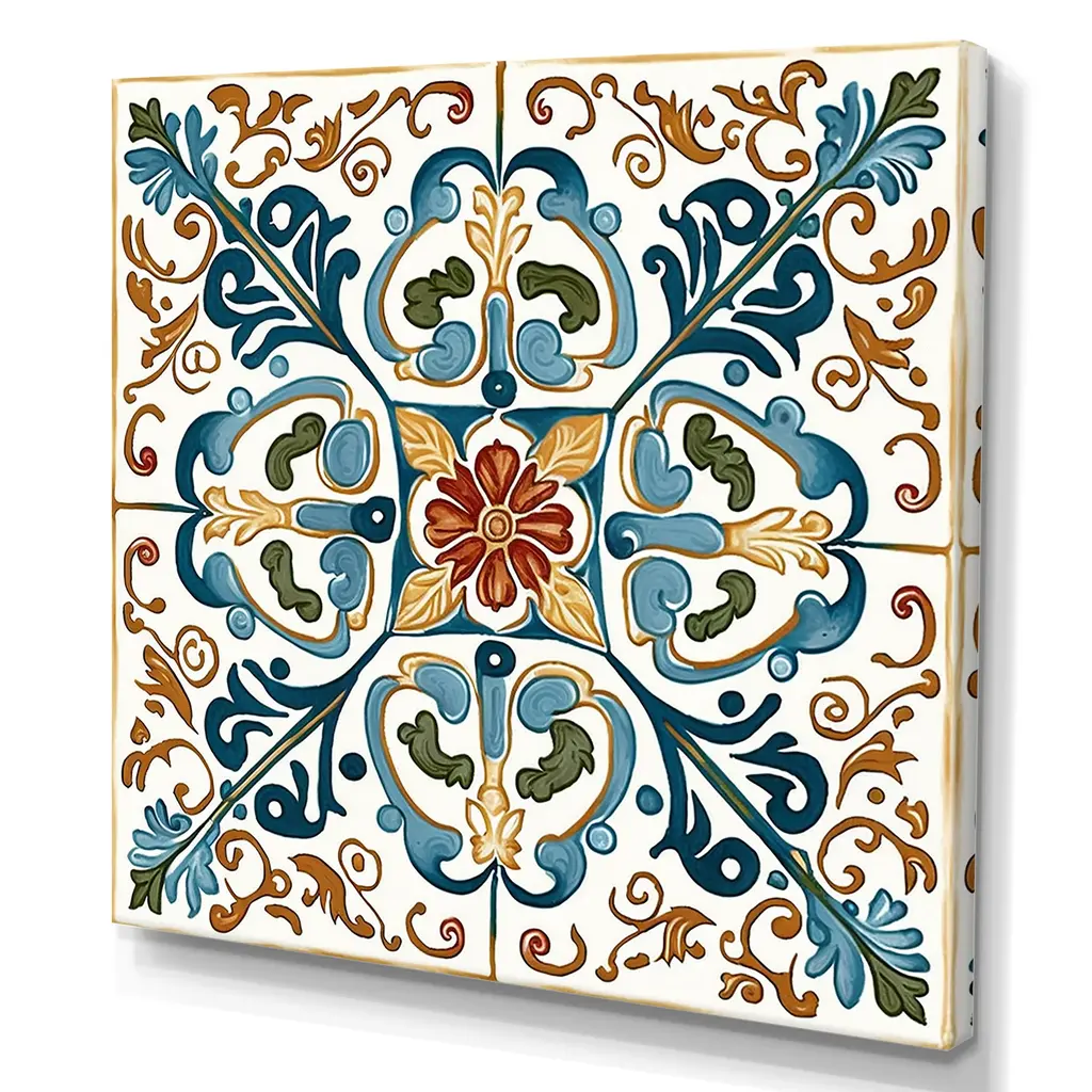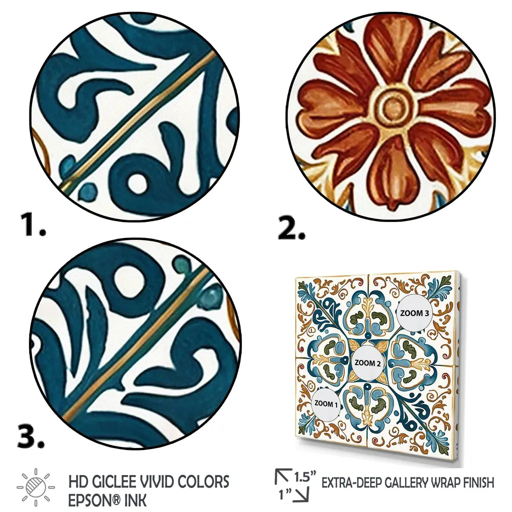 Designart "Mediterranean Tiles In Retro Blue Vi" Abstract Tile Canvas Wall Art - 30 In. Wide X 30 In. High