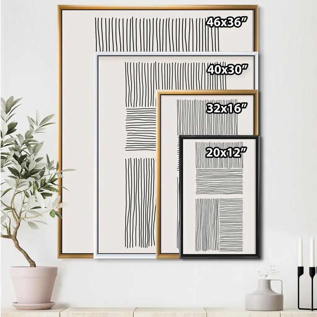 This beautiful Minimal Geometric Lines And Squares IV Framed Canvas Art is printed using the highest quality fade-resistant ink on canvas. Every one of our fine art giclee canvas prints is printed on premium quality canvas, using the finest quality inks which will not fade over time. Each giclee print is stretched tightly over a 1-inch wood sub frame ensuring the canvas is taught and does not buckle. The canvas print is inserted into a wood floating frame. The canvas art print is gallery-wrapped (the design continues on the sides) , giving it a real art gallery feel. All of our Framed canvas prints are carefully packaged with corner protection, fragile labeling and sturdy boxes to ensure safe delivery. Every framed canvas print arrives ready to hang on the wall, with the hanging kits included. Features: - Style : Modern & Contemporary - Subject : Abstract, Geometric - Color : Black - Premium quality cotton canvas. - Arrives ready to hang on the wall - Easy to Hang