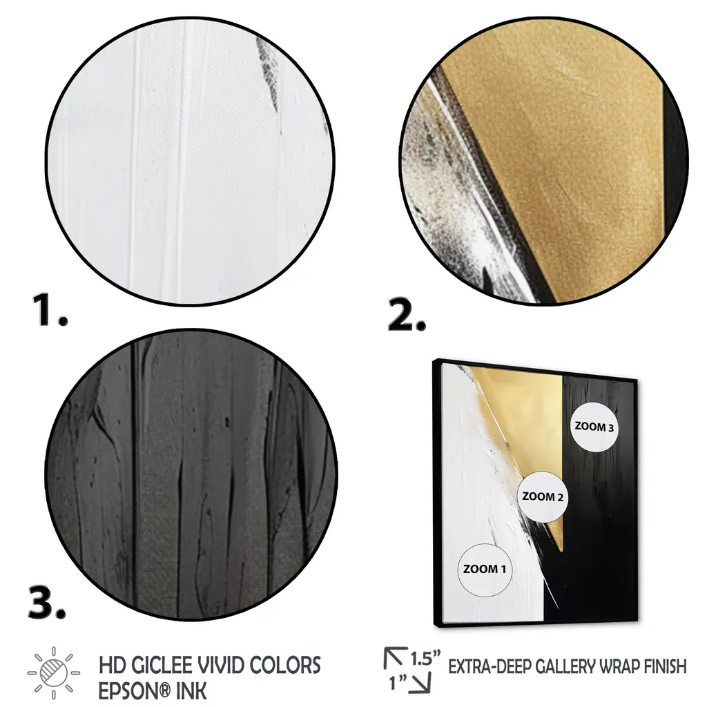 This beautiful Minimal Joy In Black And Gold IV Framed Canvas Art is printed using the highest quality fade-resistant ink on canvas. Every one of our fine art giclee canvas prints is printed on premium quality canvas, using the finest quality inks which will not fade over time. Each giclee print is stretched tightly over a 1-inch wood sub frame ensuring the canvas is taught and does not buckle. The canvas print is inserted into a wood floating frame. All of our Framed canvas prints are carefully packaged with corner protection, fragile labeling and sturdy boxes to ensure safe delivery. Every framed canvas print arrives ready to hang on the wall, with the hanging kits included. This framed art print is available in many different color frames. Features: - Style : Modern & Contemporary - Subject : Abstract - Color : Black, White - Premium quality cotton canvas. - Arrives ready to hang on the wall - Easy to Hang