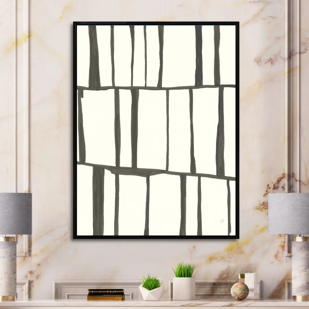 This beautiful minimalist black and white I Framed Canvas Art is printed using the highest quality fade-resistant ink on canvas. Every one of our fine art giclee canvas prints is printed on premium quality canvas, using the finest quality inks which will not fade over time. Each giclee print is stretched tightly over a 1-inch wood sub frame ensuring the canvas is taught and does not buckle. The canvas print is inserted into a wood floating frame. All of our Framed canvas prints are carefully packaged with corner protection, fragile labeling and sturdy boxes to ensure safe delivery. Every framed canvas print arrives ready to hang on the wall, with the hanging kits included. Features: - Style : Mid-Century Modern, Transitional, Traditional - Subject : Abstract, Geometric - Color : Black - Premium quality cotton canvas. - Arrives ready to hang on the wall - Easy to Hang