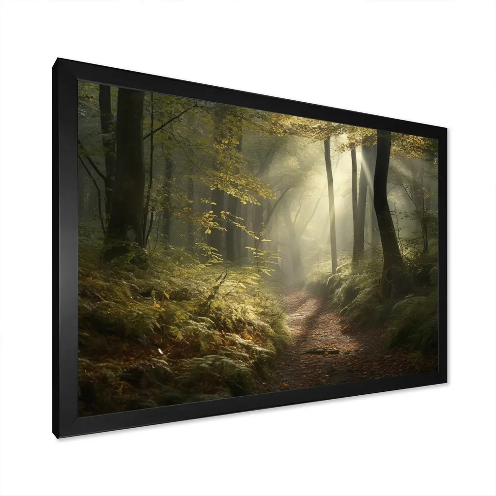 This beautiful 'Misty Trail In The Woods I' Framed wall Art is printed using the highest quality fade-resistant ink on canvas. Every one of our fine art giclee canvas prints is printed on premium quality canvas, using the finest quality inks which will not fade over time, and then mounted and framed on a 1.5 inch wide frame. All of our Framed canvas prints are carefully packaged with corner protection, fragile labeling and sturdy boxes to ensure safe delivery. Every framed canvas print arrives ready to hang on the wall, with the hanging kits included. This framed art print is available in many different color frames. Features: - Style : Country - Subject : Landscapes - Color : Green - Premium quality cotton canvas. - Arrives ready to hang on the wall - Frame Tickness : 1 inch - Frame Width : 1.5 inch Wide - Easy to Hang