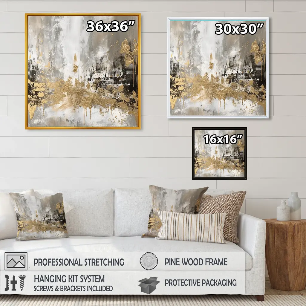 Designart "Modern Golden Abstract" Abstract Framed Canvas Wall Art Print - Black - 16 In. Wide X 16 In. High