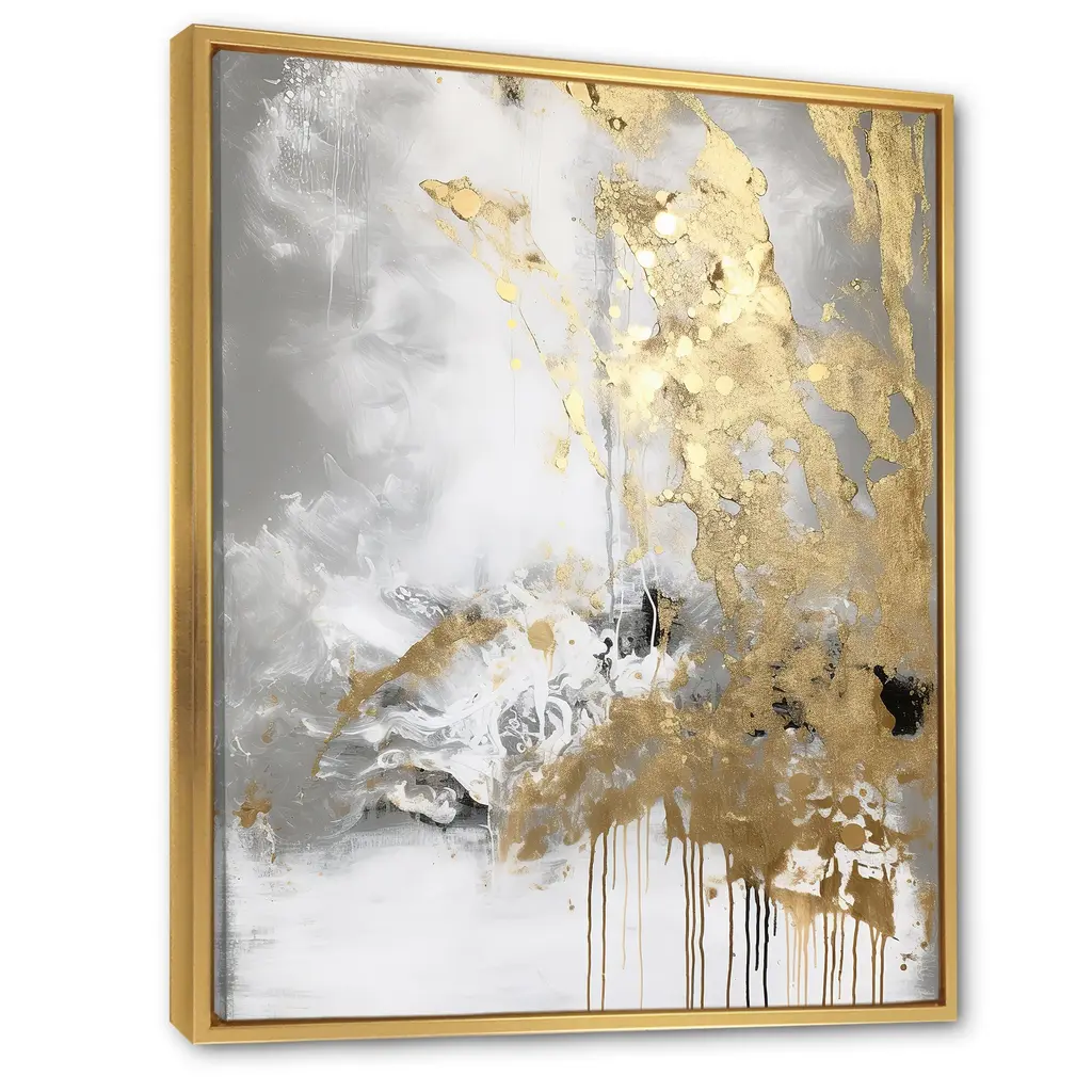 This beautiful "Modern Golden Abstract" Framed Canvas Art is printed using the highest quality fade-resistant ink on canvas. Every one of our fine art giclee canvas prints is printed on premium quality canvas, using the finest quality inks which will not fade over time. Each giclee print is stretched tightly over a 1-inch wood sub frame ensuring the canvas is taught and does not buckle. The canvas print is inserted into a wood floating frame. All of our Framed canvas prints are carefully packaged with corner protection, fragile labeling and sturdy boxes to ensure safe delivery. Every framed canvas print arrives ready to hang on the wall, with the hanging kits included. This framed art print is available in many different color frames. Features: - Style : Modern & Contemporary - Subject : Abstract - Color : White - Premium quality cotton canvas. - Arrives ready to hang on the wall - Easy to Hang