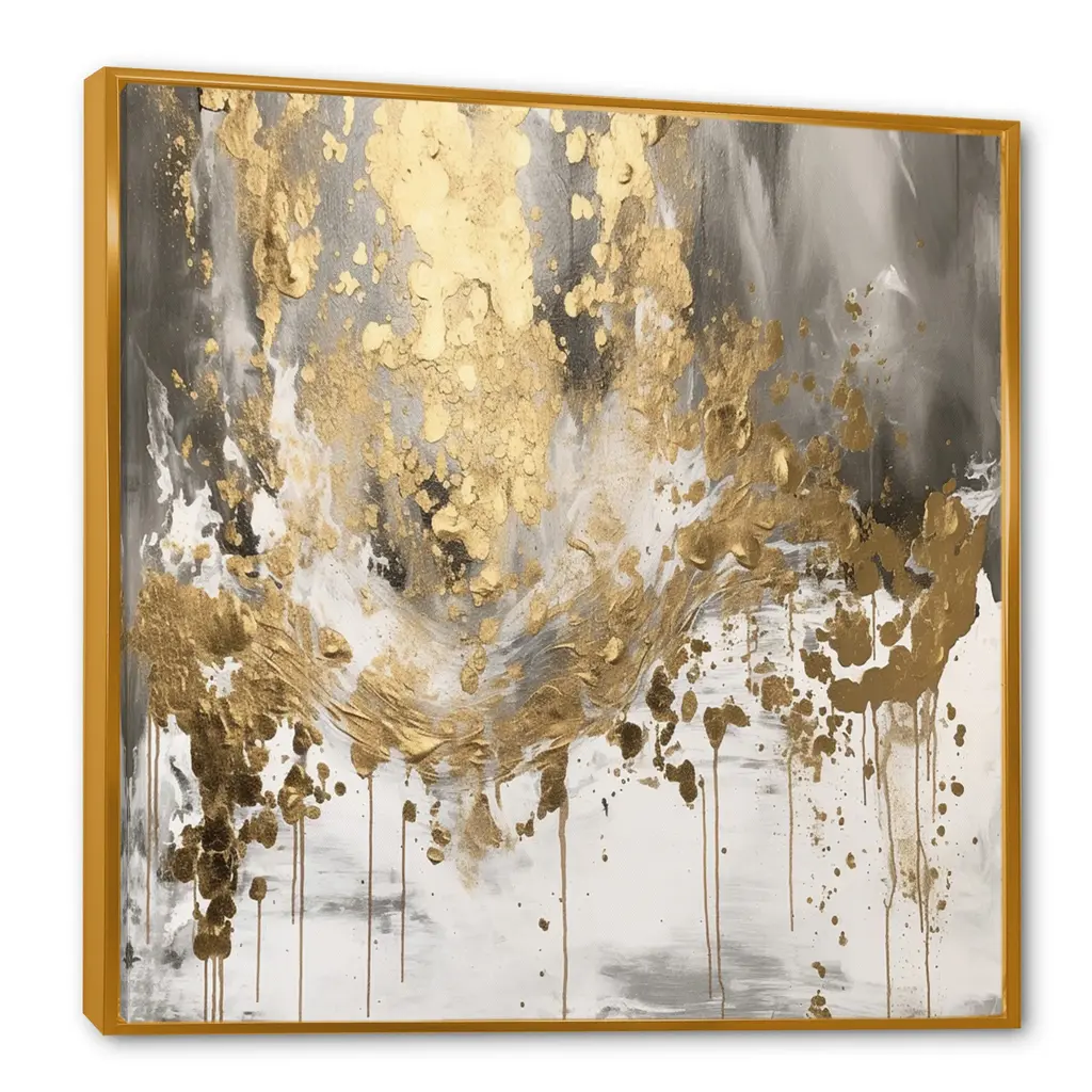 This beautiful "Modern Golden Drip" Framed Canvas Art is printed using the highest quality fade-resistant ink on canvas. Every one of our fine art giclee canvas prints is printed on premium quality canvas, using the finest quality inks which will not fade over time. Each giclee print is stretched tightly over a 1-inch wood sub frame ensuring the canvas is taught and does not buckle. The canvas print is inserted into a wood floating frame. All of our Framed canvas prints are carefully packaged with corner protection, fragile labeling and sturdy boxes to ensure safe delivery. Every framed canvas print arrives ready to hang on the wall, with the hanging kits included. This framed art print is available in many different color frames. Features: - Style : Modern & Contemporary - Subject : Abstract - Color : White - Premium quality cotton canvas. - Arrives ready to hang on the wall - Easy to Hang