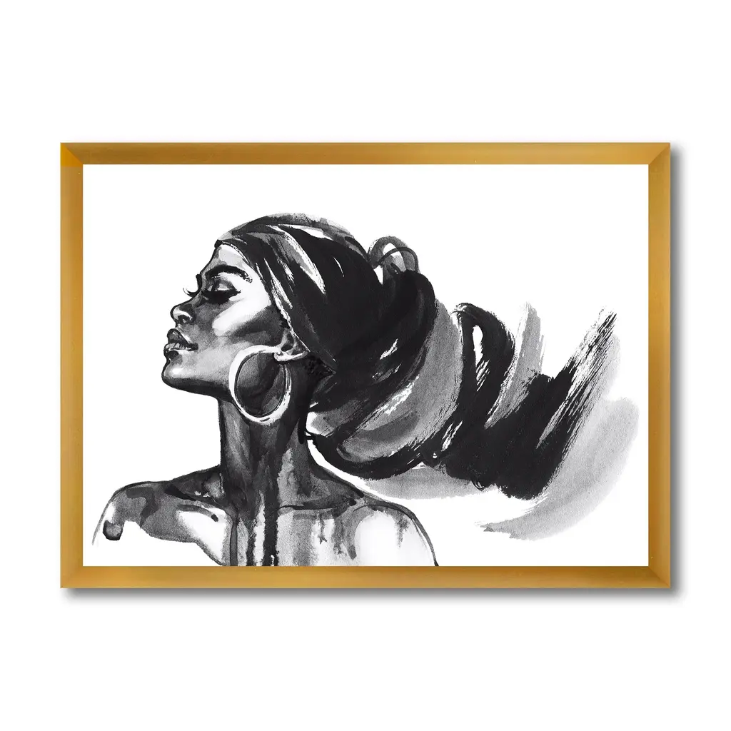 Designart "Monochrome Portrait Of African American Woman Iv" Modern Framed Art Print - 32 In. Wide X 16 In. High - Gold