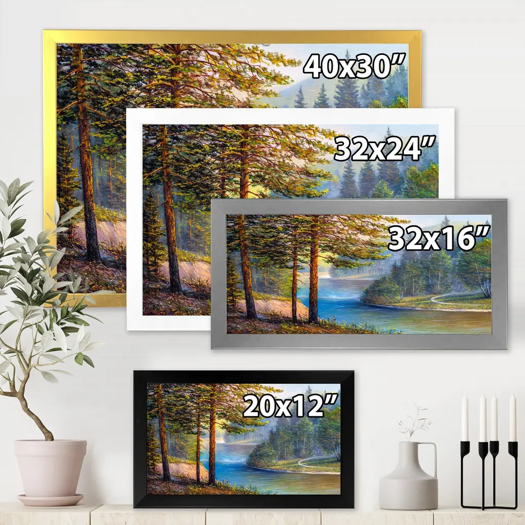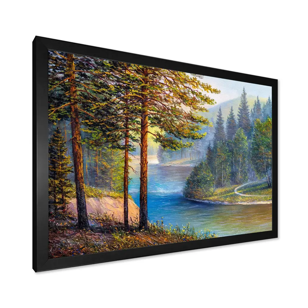 This beautiful Morning Sunlight Through The Pine & Fir Forest Framed wall Art is printed using the highest quality fade resistant ink on canvas. Every one of our Framed Giclee Prints is printed on premium quality canvas, using the finest quality inks which will not fade over time and then mounted and framed on a 1.5 inch wide frame. This framed art print is available in many different color frames. All of our framed art prints are carefully packaged with corner protectors, fragile labeling, and sturdy boxes to ensure a safe delivery. Every framed art arrives ready to hang on the wall, with the hanging kit included. Features: - Style : Lake House - Subject : Landscapes - Color : Green - Premium quality cotton canvas mounted. - Available in several frame colors. - Arrives with instructions and hanging kit