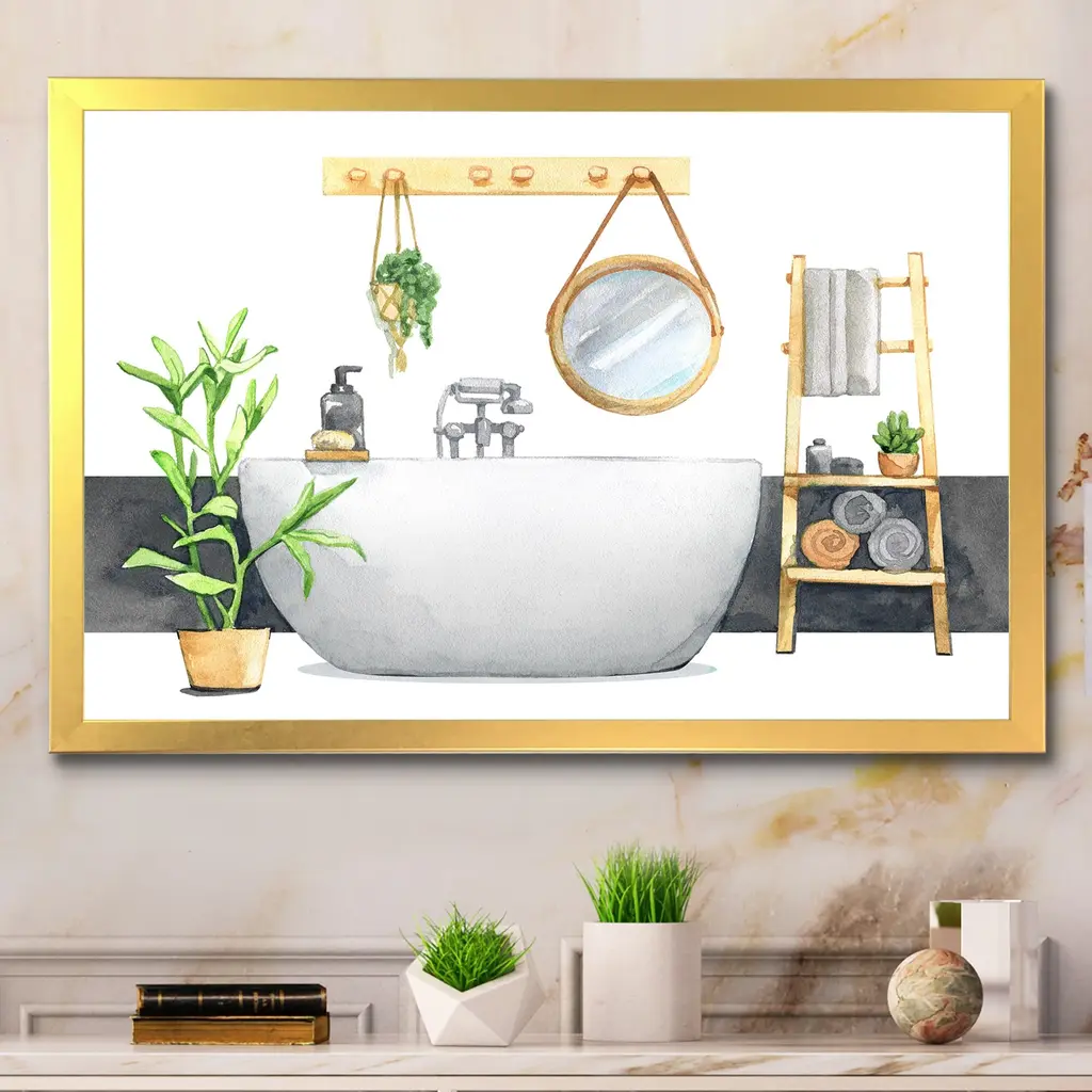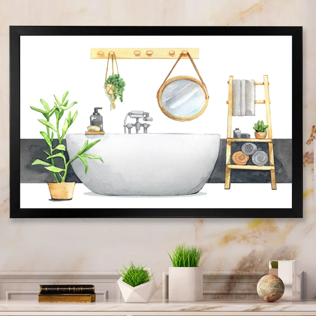 This beautiful Natural Bathroom Decor Framed wall Art is printed using the highest quality fade resistant ink on canvas. Every one of our Framed Giclee Prints is printed on premium quality canvas, using the finest quality inks which will not fade over time and then mounted and framed on a 1.5 inch wide frame. This framed art print is available in many different color frames. All of our framed art prints are carefully packaged with corner protectors, fragile labeling, and sturdy boxes to ensure a safe delivery. Every framed art arrives ready to hang on the wall, with the hanging kit included. Features: - Style : Scandinavian - Subject : Abstract, Bath & Laundry - Color : Green - Premium quality cotton canvas mounted. - Available in several frame colors. - Arrives with instructions and hanging kit