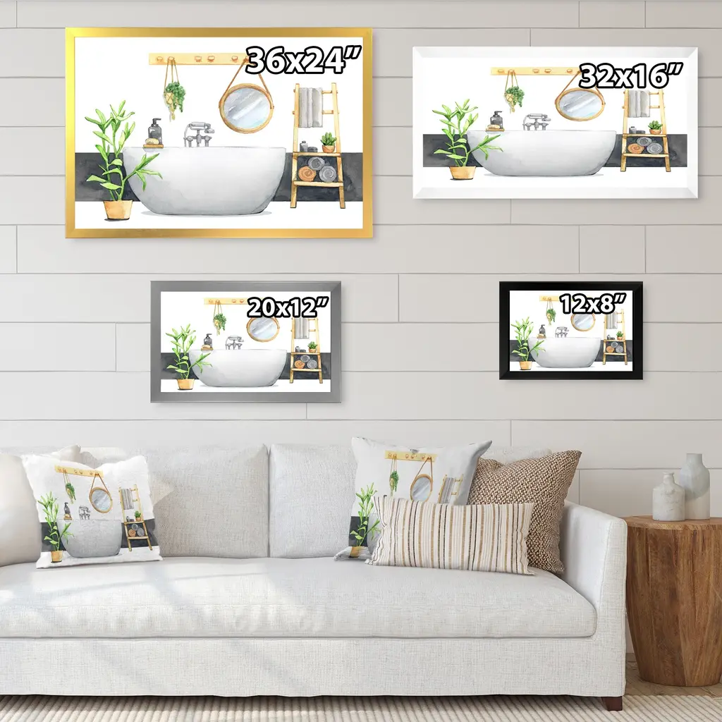Designart "Natural Bathroom Decor" Bathroom Framed Art Print - 12 In. Wide X 8 In. High - Silver