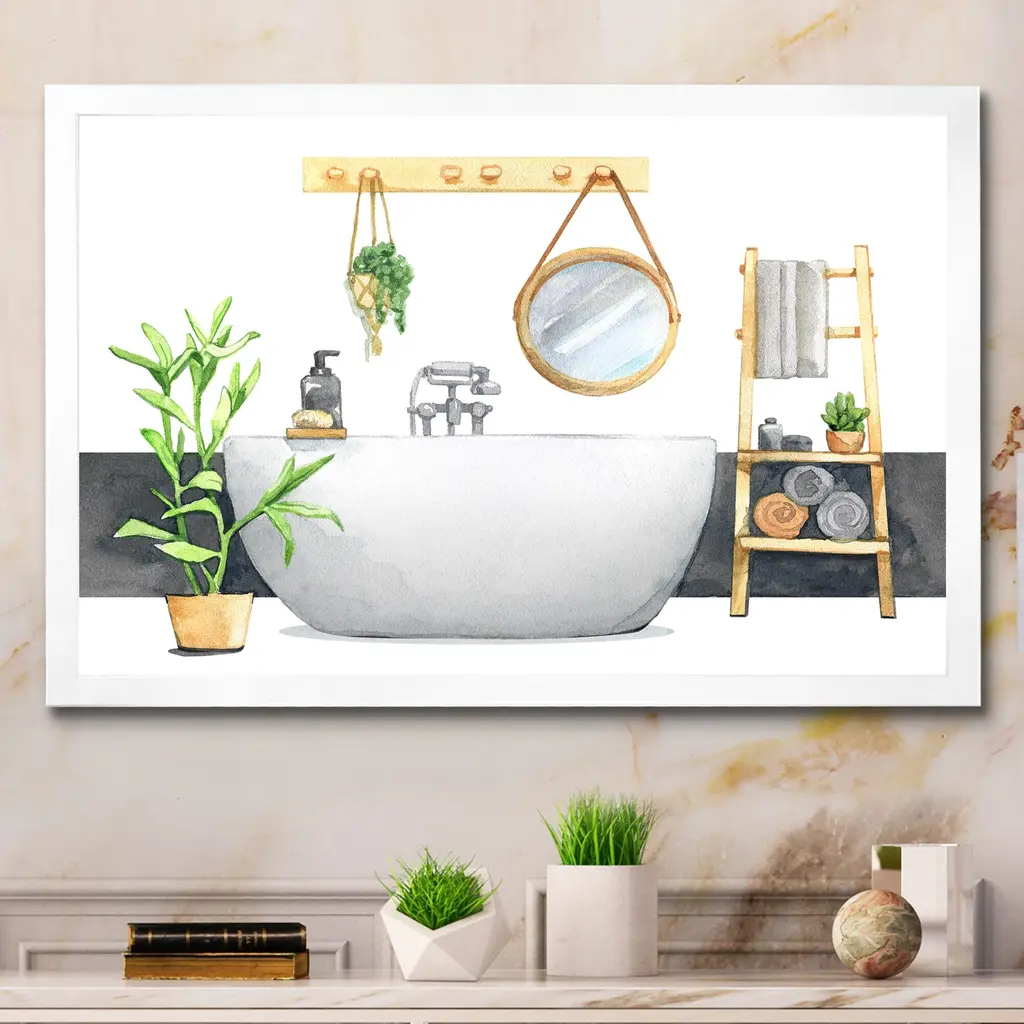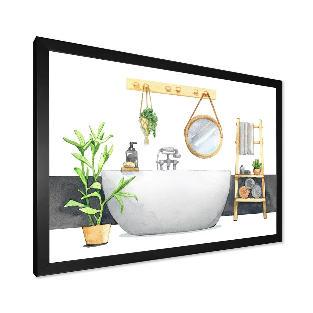 This beautiful Natural Bathroom Decor Framed wall Art is printed using the highest quality fade resistant ink on canvas. Every one of our Framed Giclee Prints is printed on premium quality canvas, using the finest quality inks which will not fade over time and then mounted and framed on a 1.5 inch wide frame. This framed art print is available in many different color frames. All of our framed art prints are carefully packaged with corner protectors, fragile labeling, and sturdy boxes to ensure a safe delivery. Every framed art arrives ready to hang on the wall, with the hanging kit included. Features: - Style : Scandinavian - Subject : Abstract, Bath & Laundry - Color : Green - Premium quality cotton canvas mounted. - Available in several frame colors. - Arrives with instructions and hanging kit