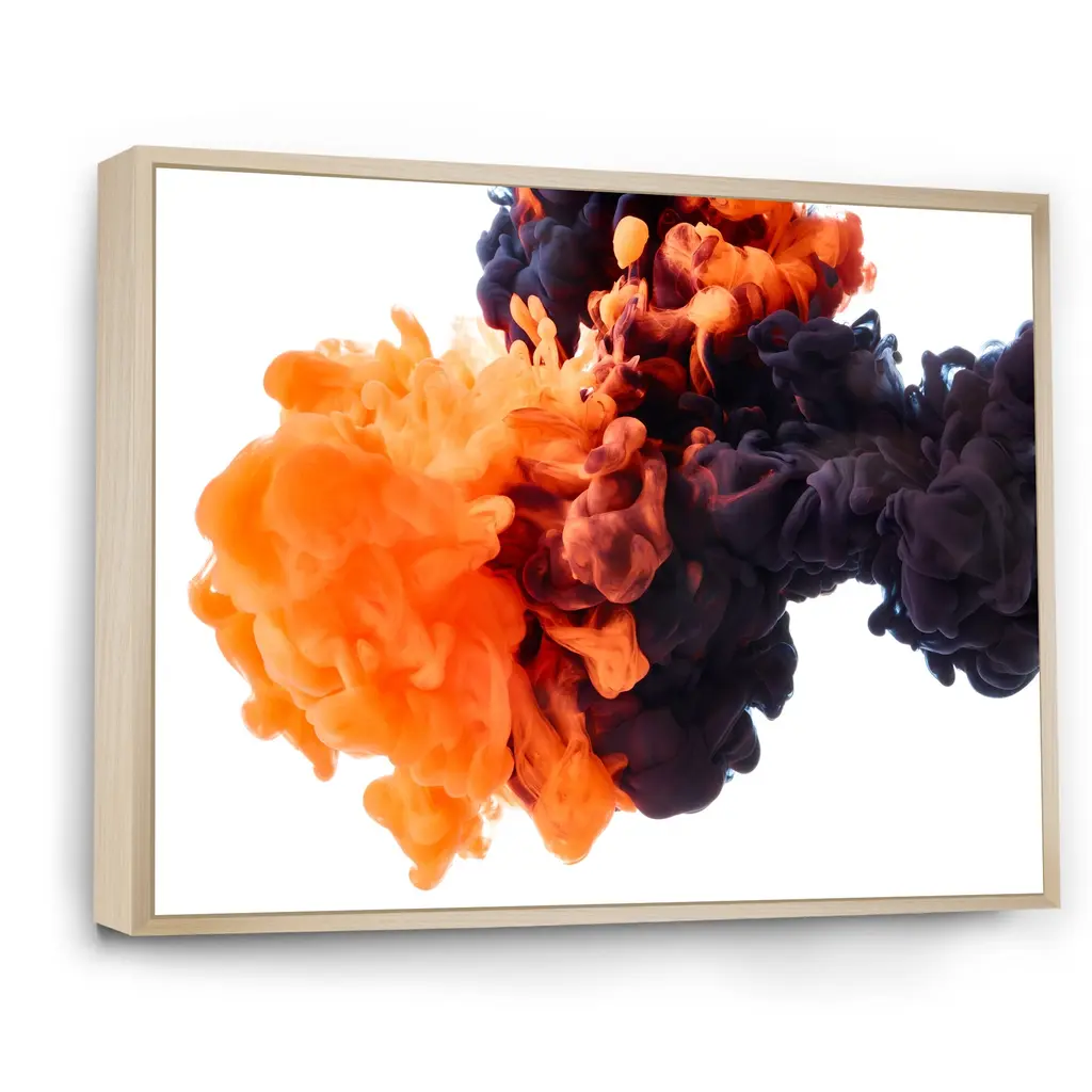 This beautiful Orange And Black Dancing Ink Clouds Framed Canvas Art is printed using the highest quality fade-resistant ink on canvas. Every one of our fine art giclee canvas prints is printed on premium quality canvas, using the finest quality inks which will not fade over time. Each giclee print is stretched tightly over a 1-inch wood sub frame ensuring the canvas is taught and does not buckle. The canvas print is inserted into a wood floating frame. All of our Framed canvas prints are carefully packaged with corner protection, fragile labeling and sturdy boxes to ensure safe delivery. Every framed canvas print arrives ready to hang on the wall, with the hanging kits included. This framed art print is available in many different color frames. Features: - Style : Modern & Contemporary - Subject : Abstract, - Color : Orange - Premium quality cotton canvas. - Arrives ready to hang on the wall - Easy to Hang