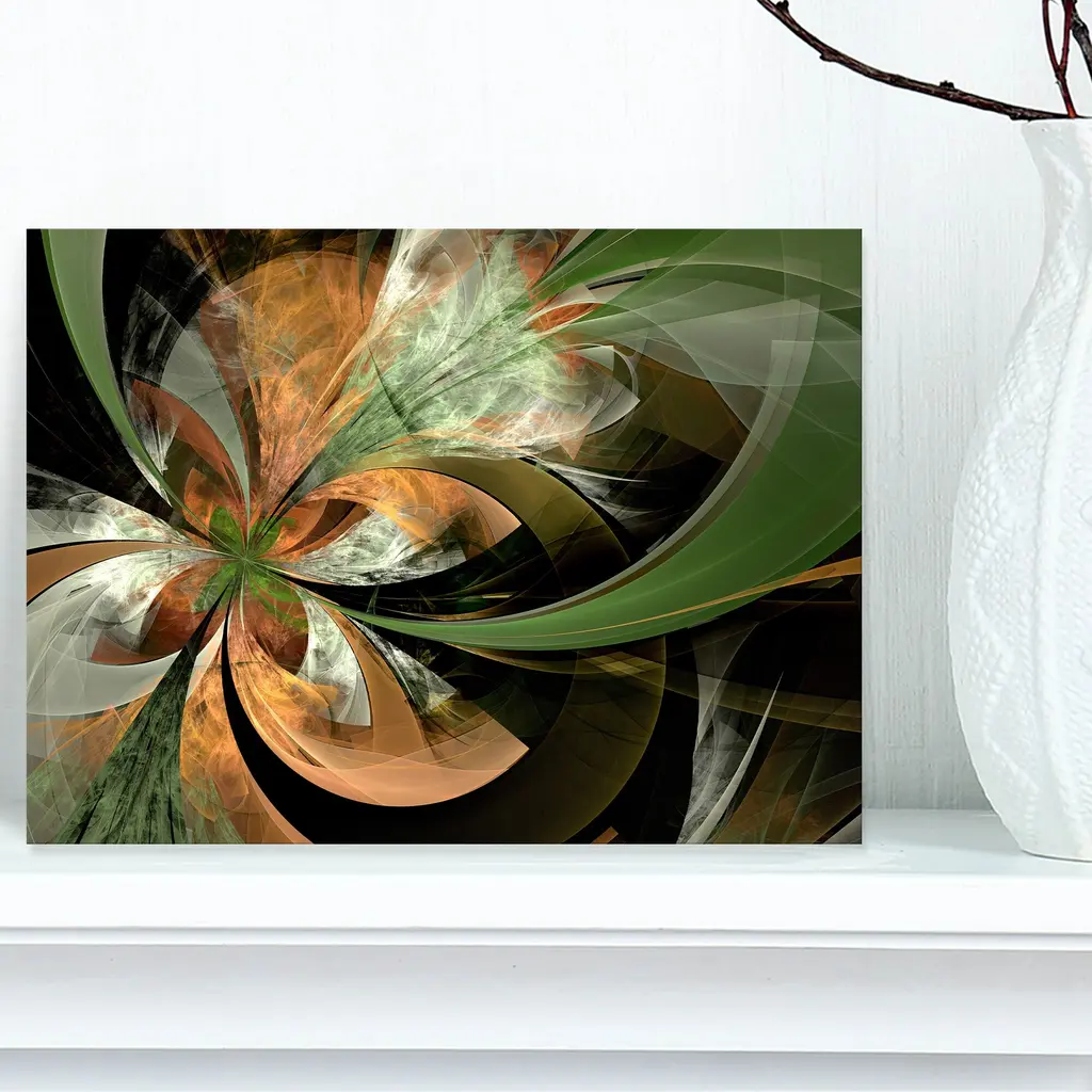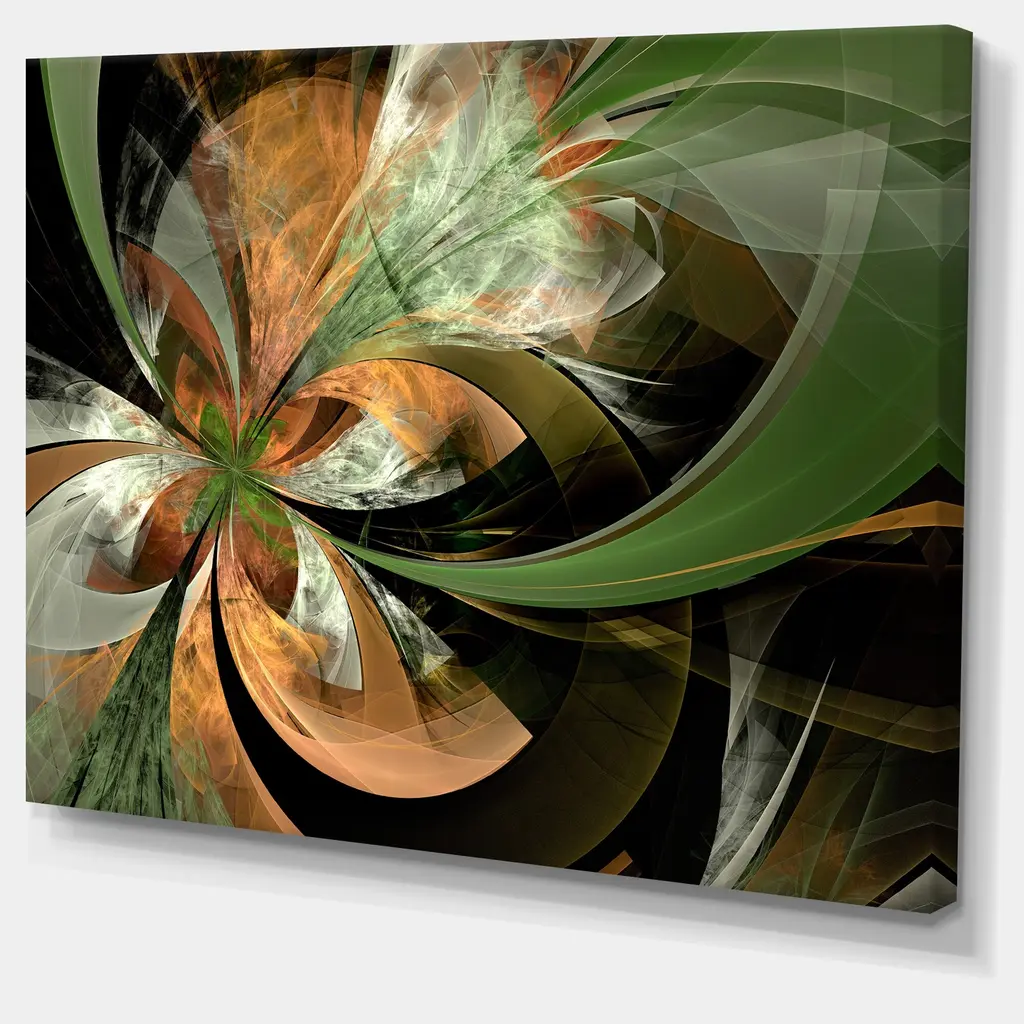 Designart "Orange And Green Large Fractal Flower" Floral Canvas Art Print - 20 In. Wide X 12 In. High