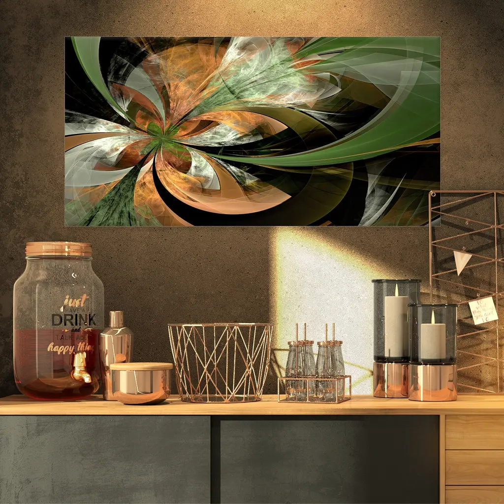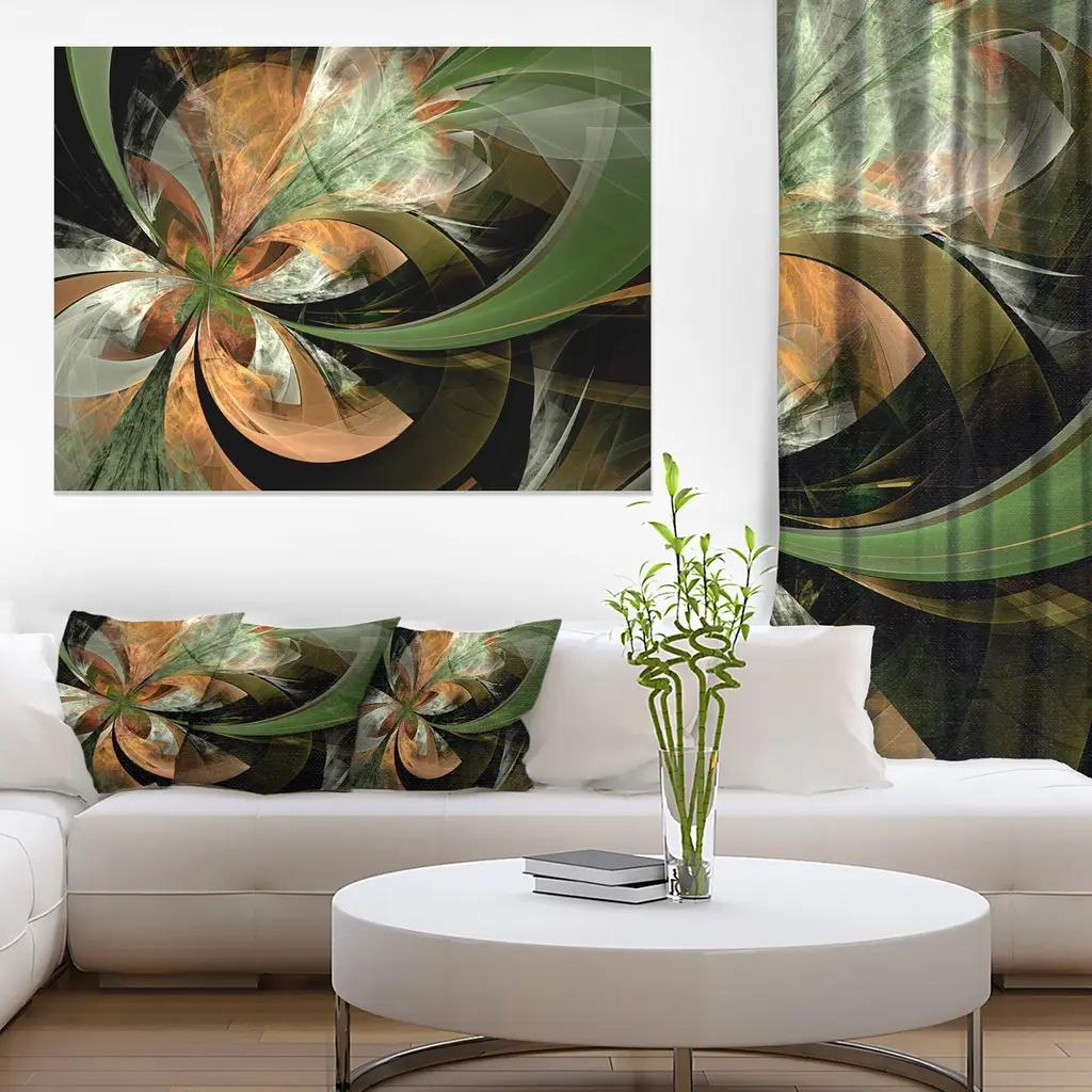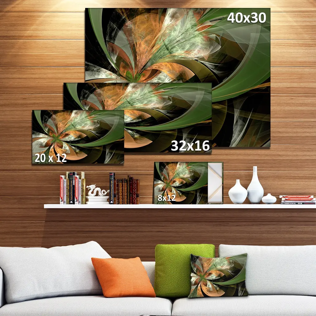 Designart "Orange And Green Large Fractal Flower" Floral Canvas Art Print - 32 In. Wide X 16 In. High