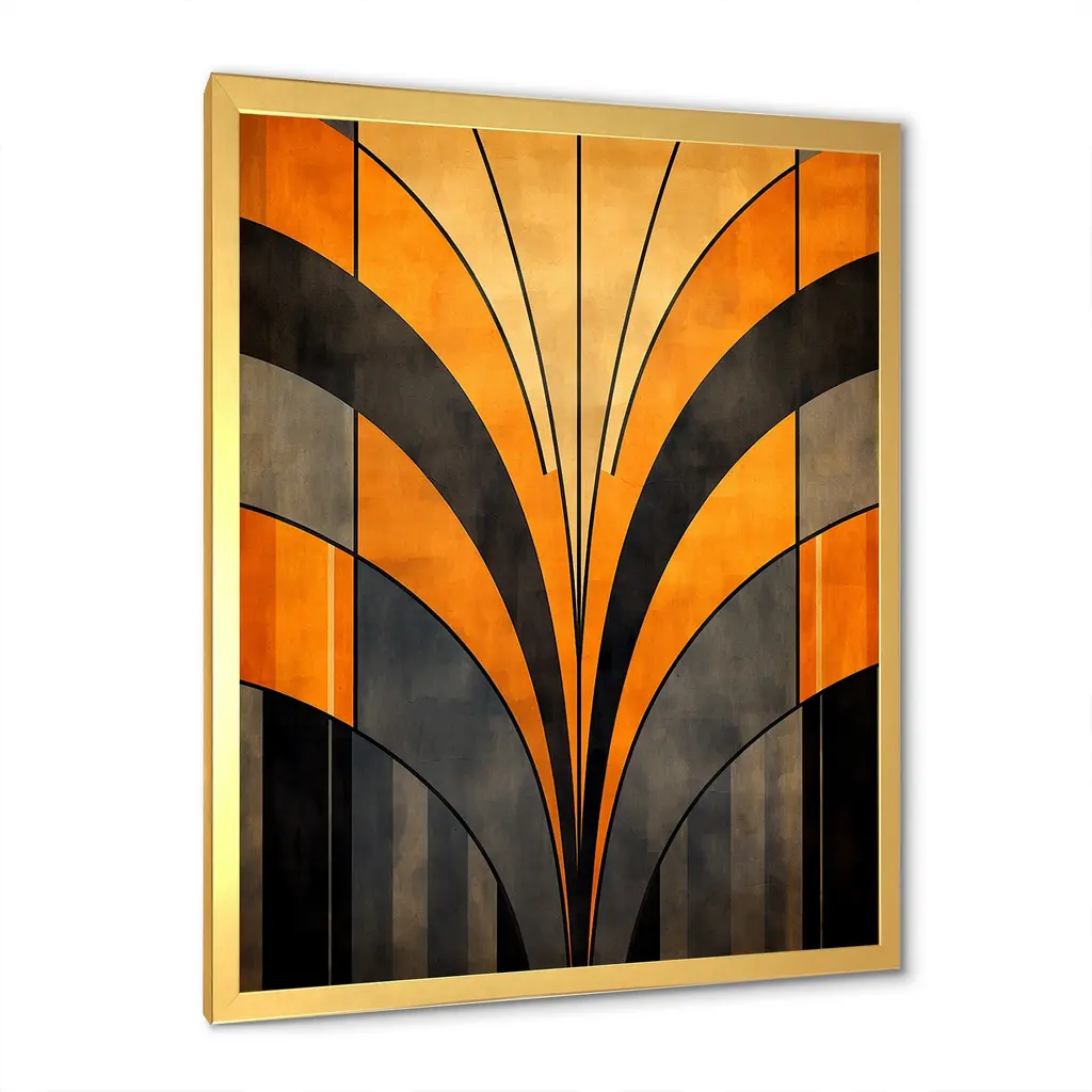Designart "Orange And Grey Vectors " Abstract Shapes Framed Canvas Wall Art - 30 In. Wide X 40 In. High - Gold