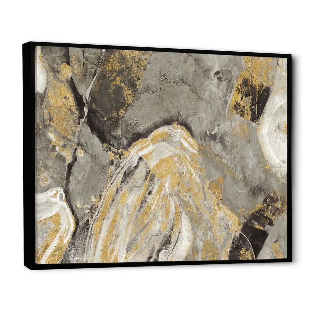 Add a touch of modern rustic charm to your home with this Designart 'Painted Gold Stone' Cabin & Lodge Framed Canvas in Grey. This stunning artwork showcases abstract patterns that are sure to catch the eye of anyone who enters your living room. The print is made on high-quality canvas that preserves the colors, ensuring long-lasting vibrancy. The framed canvas boasts a polished look, adding an elegant touch to your decor. Installation is a breeze as it arrives ready to hang.Features: