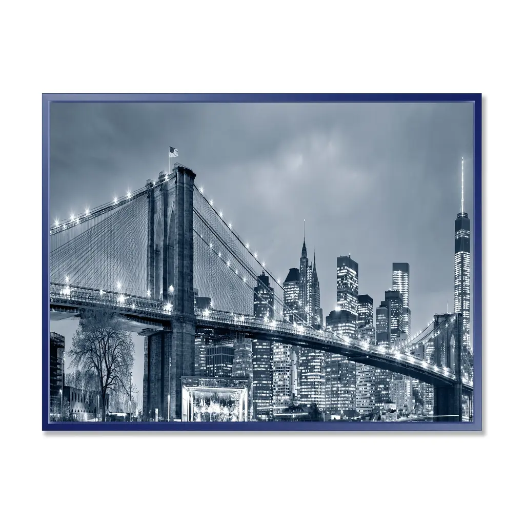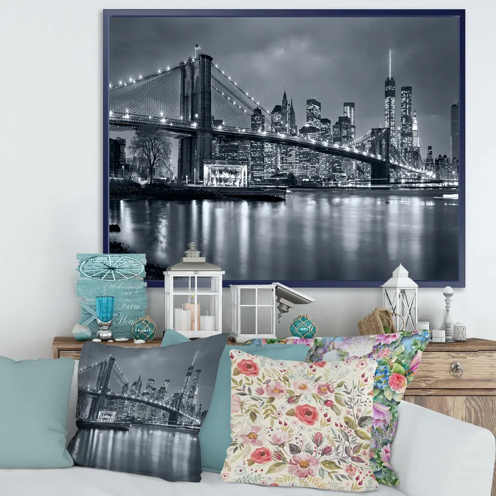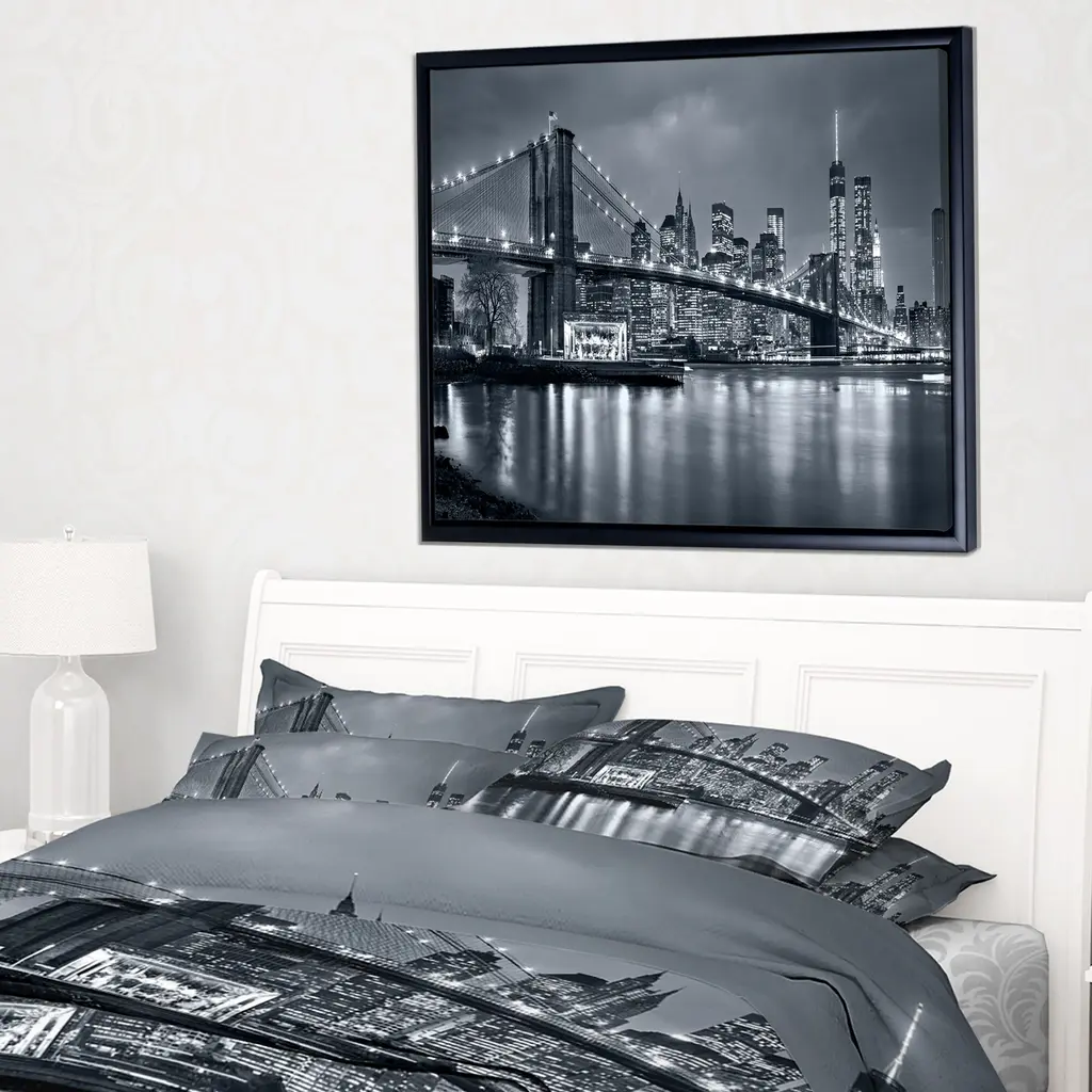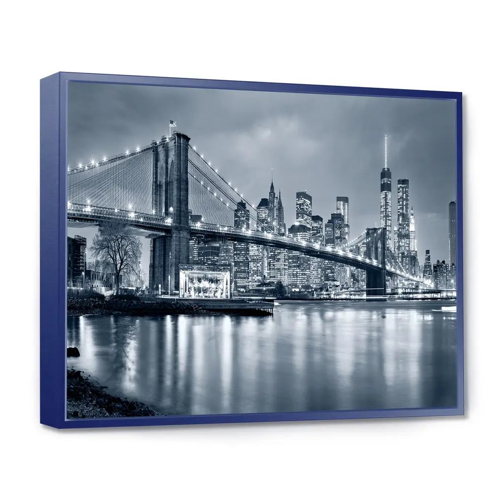 Designart "Panorama New York City At Night" Cityscape Framed Canvas Print - 32 In. Wide X 16 In. High - Black
