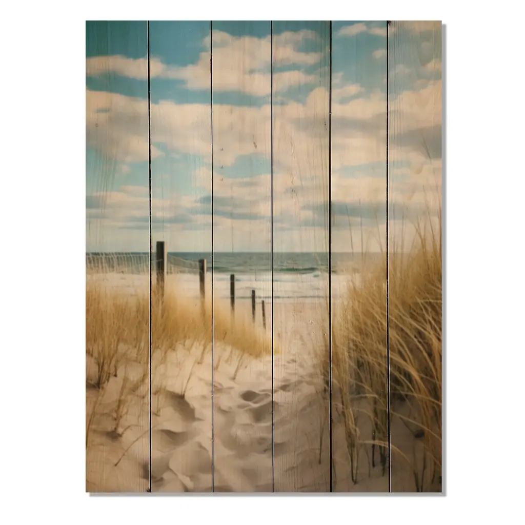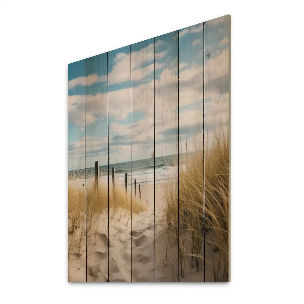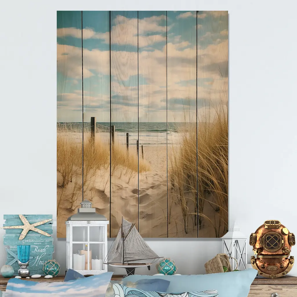 Designart "Path To The Beach V" Nautical & Beach Print On Natural Pine Wood - 30 In. Wide X 40 In. High