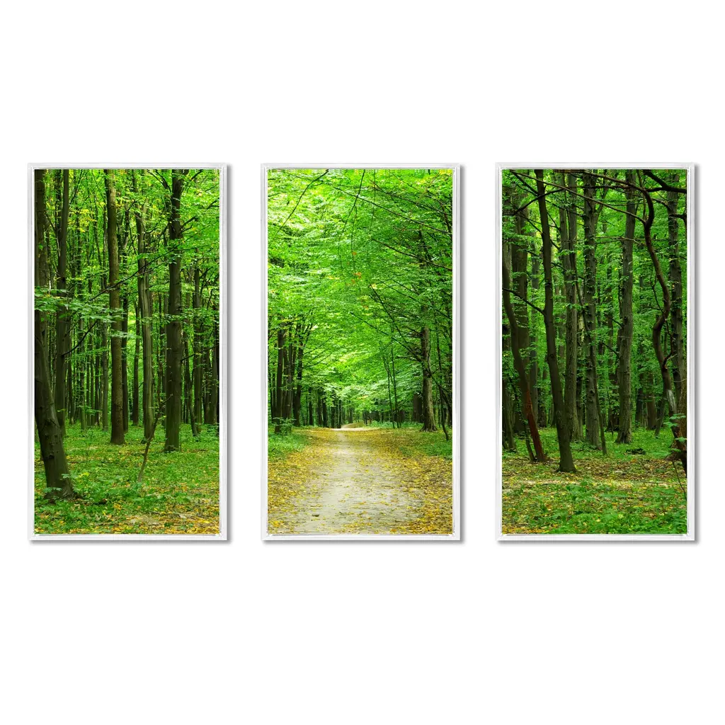 Designart "Pathway In Green Forest" Landscape Framed Canvas Wall Art Set Of 3 - 4 Colors Of Frames - 36 In. Wide X 20 In. High - 3 Panels - White