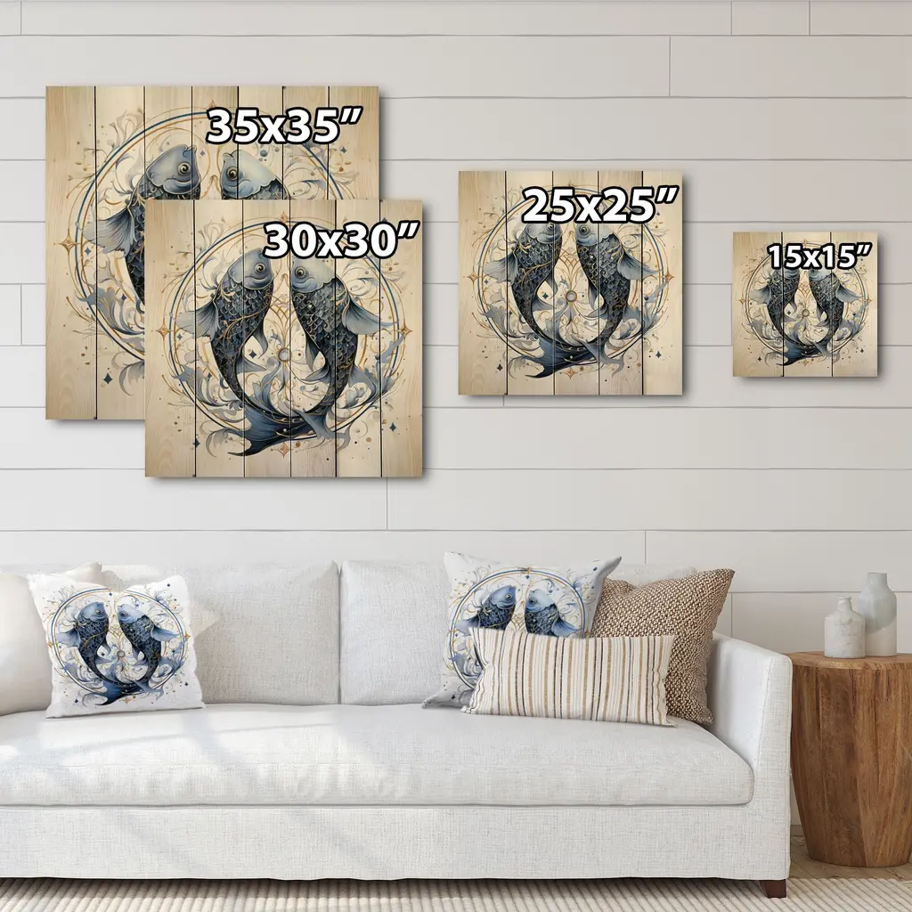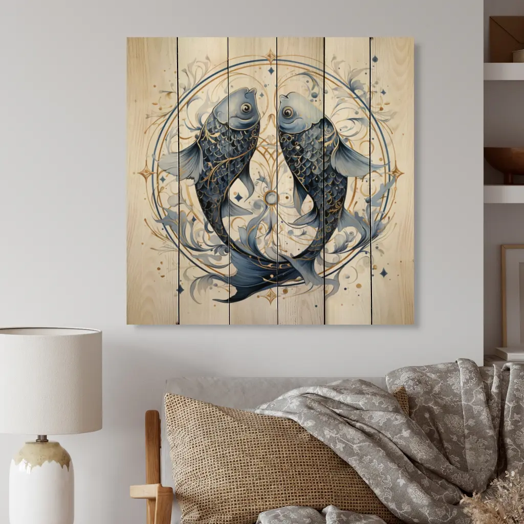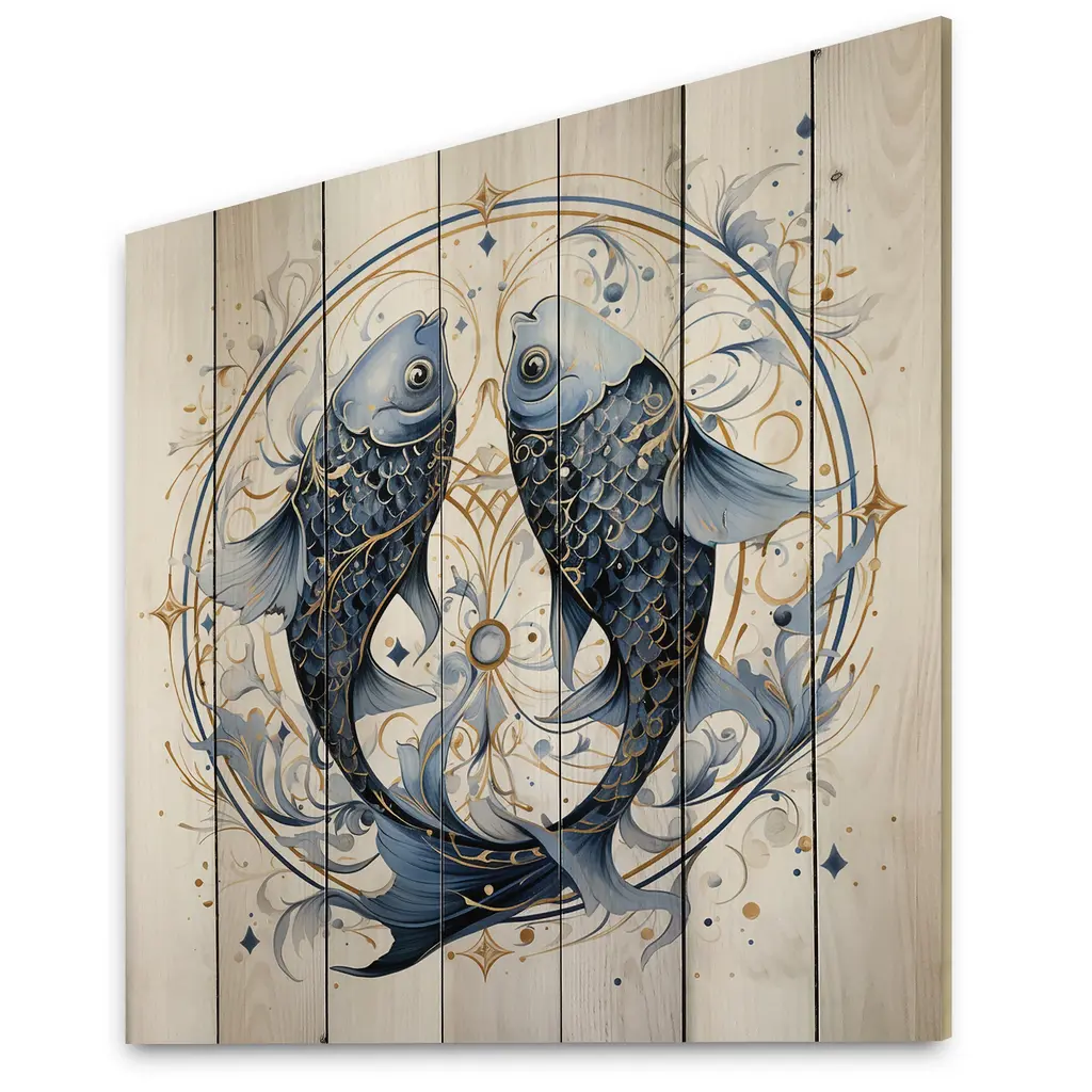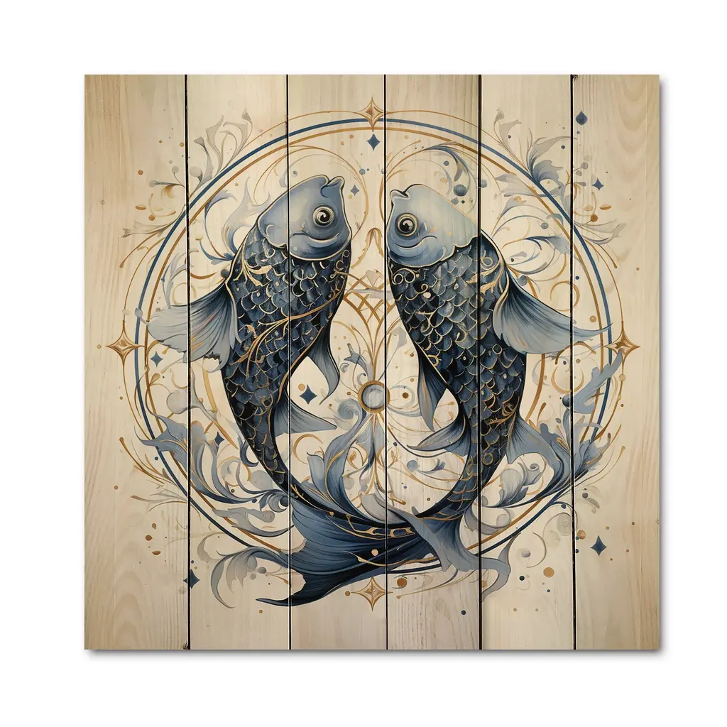 Designart "Pisces Zodiac Sign" Astrology Print On Natural Pine Wood - 15 In. Wide X 15 In. High
