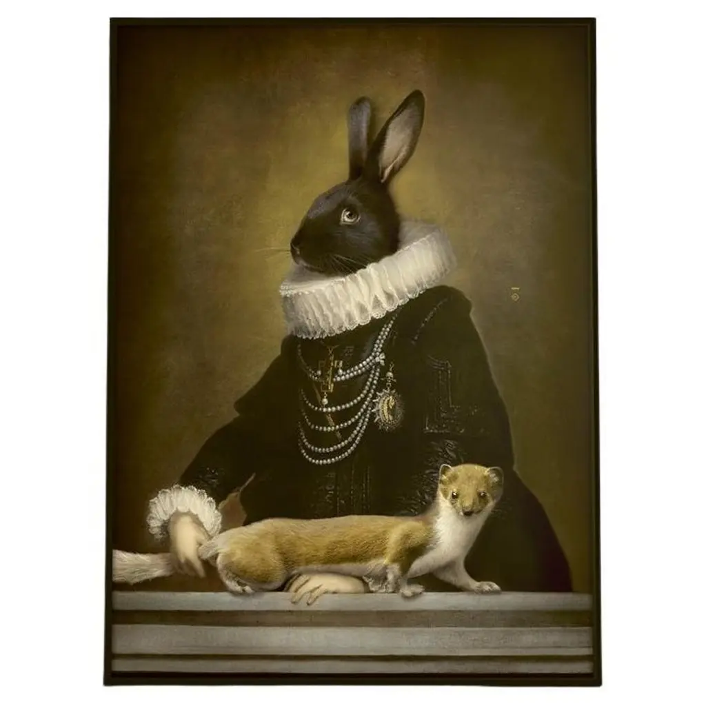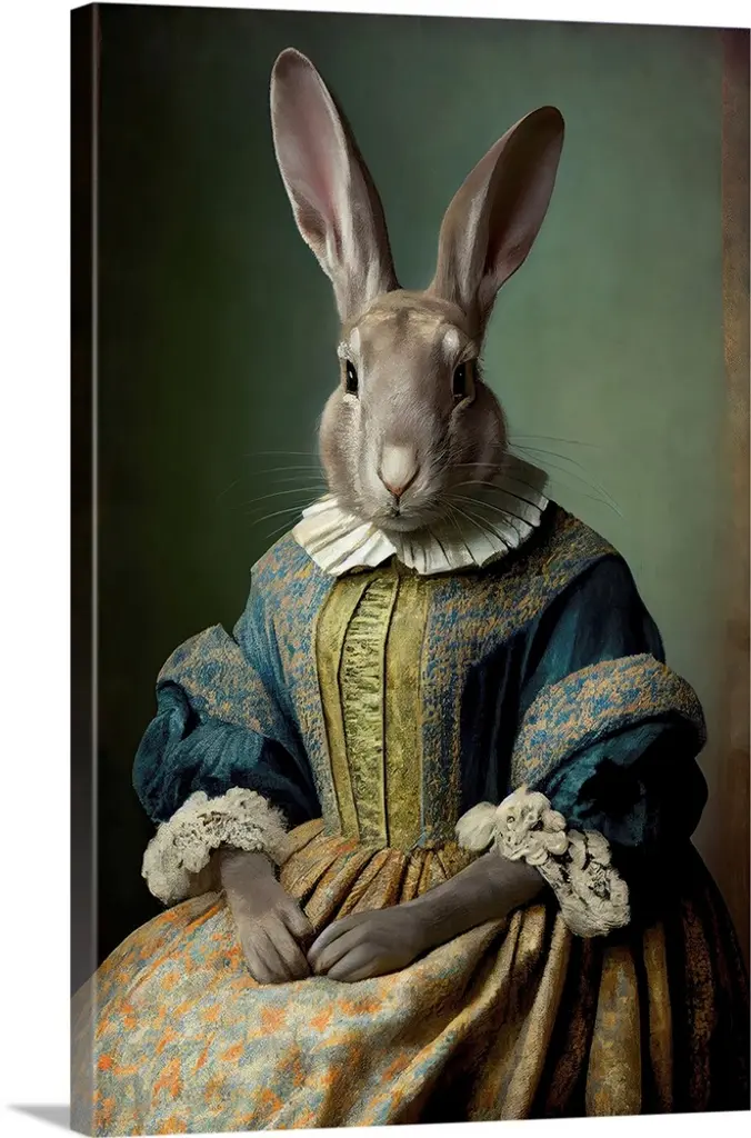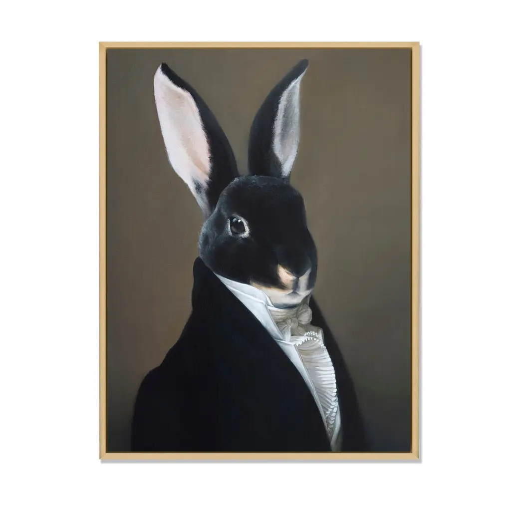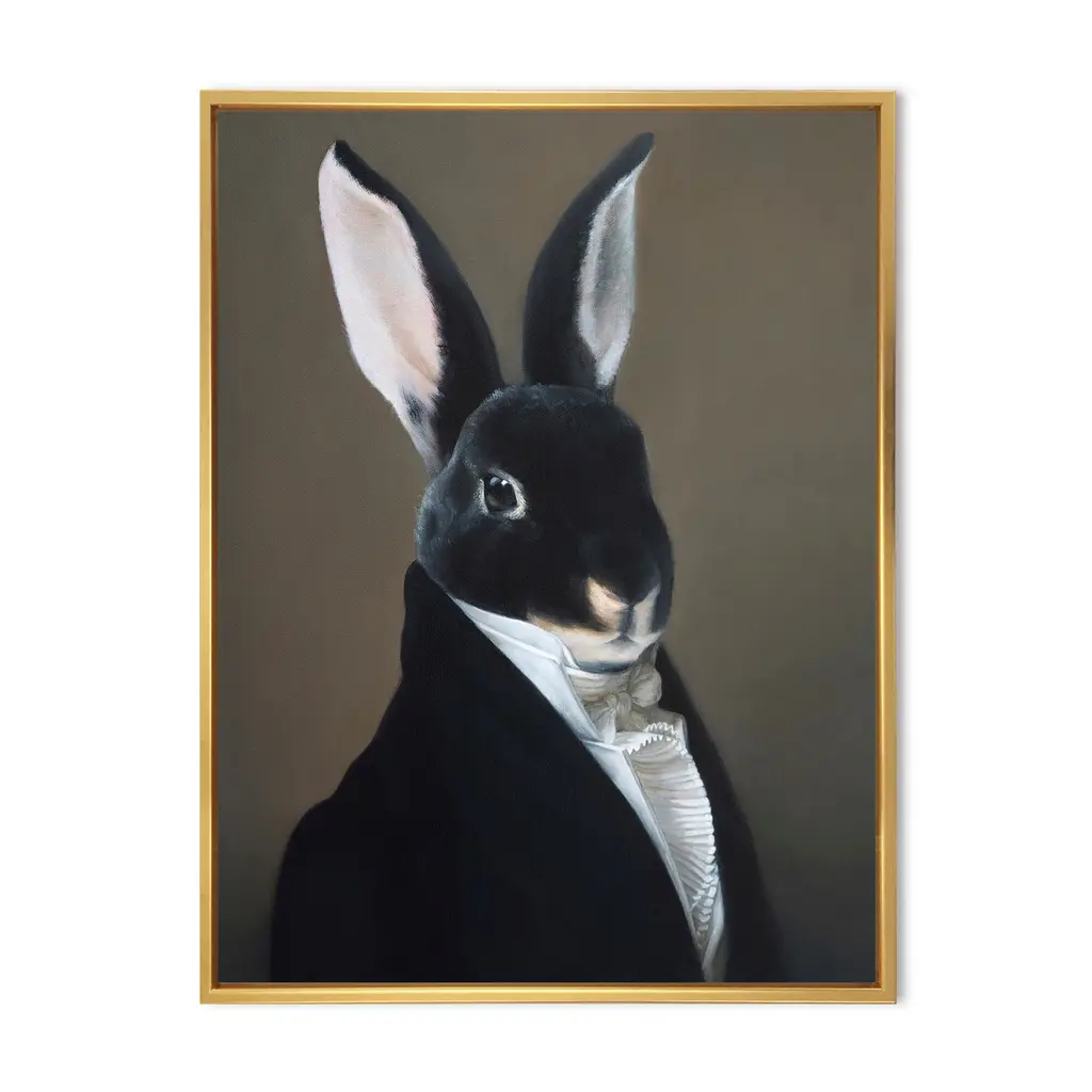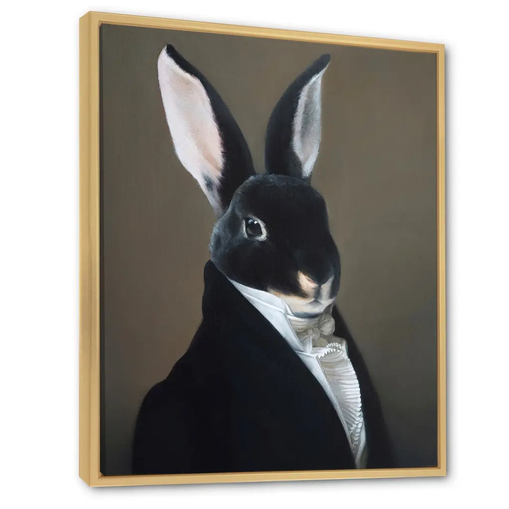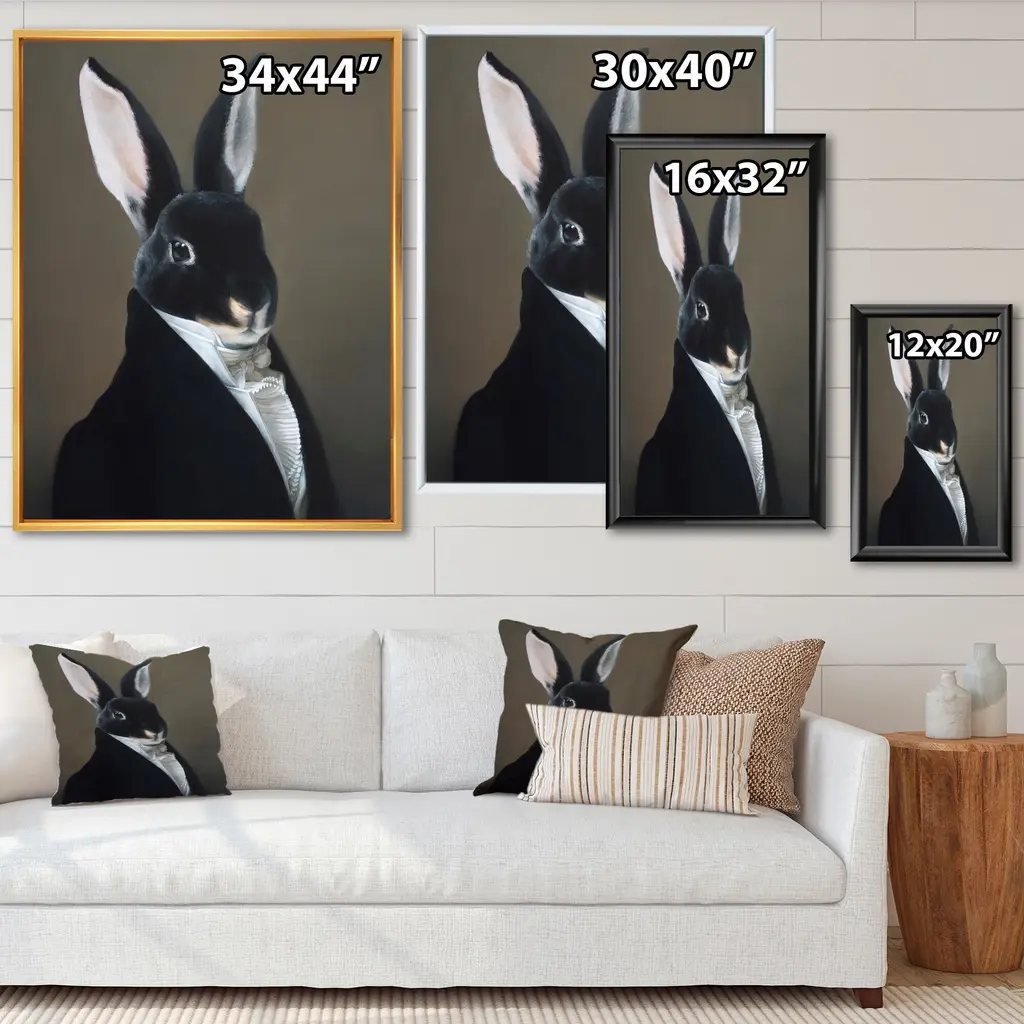 This beautiful Portrait Of A Dressed Up Rabbit Framed Canvas Art is printed using the highest quality fade-resistant ink on canvas. Every one of our fine art giclee canvas prints is printed on premium quality canvas, using the finest quality inks which will not fade over time. Each giclee print is stretched tightly over a 1-inch wood sub frame ensuring the canvas is taught and does not buckle. The canvas print is inserted into a wood floating frame. All of our Framed canvas prints are carefully packaged with corner protection, fragile labeling and sturdy boxes to ensure safe delivery. Every framed canvas print arrives ready to hang on the wall, with the hanging kits included. This framed art print is available in many different color frames. Features: - Style : Children's Art - Subject : Animals, Circus - Color : Black - Premium quality cotton canvas. - Arrives ready to hang on the wall - Easy to Hang