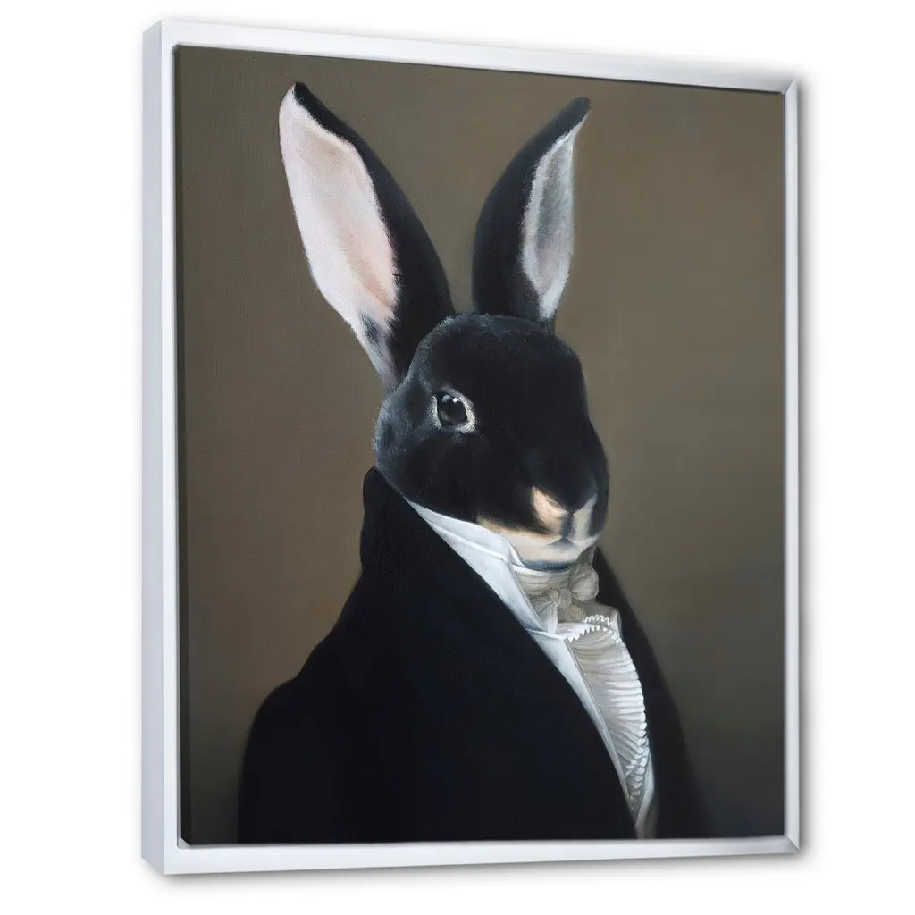 This beautiful Portrait Of A Dressed Up Rabbit Framed Canvas Art is printed using the highest quality fade-resistant ink on canvas. Every one of our fine art giclee canvas prints is printed on premium quality canvas, using the finest quality inks which will not fade over time. Each giclee print is stretched tightly over a 1-inch wood sub frame ensuring the canvas is taught and does not buckle. The canvas print is inserted into a wood floating frame. All of our Framed canvas prints are carefully packaged with corner protection, fragile labeling and sturdy boxes to ensure safe delivery. Every framed canvas print arrives ready to hang on the wall, with the hanging kits included. This framed art print is available in many different color frames. Features: - Style : Children's Art - Subject : Animals, Circus - Color : Black - Premium quality cotton canvas. - Arrives ready to hang on the wall - Easy to Hang