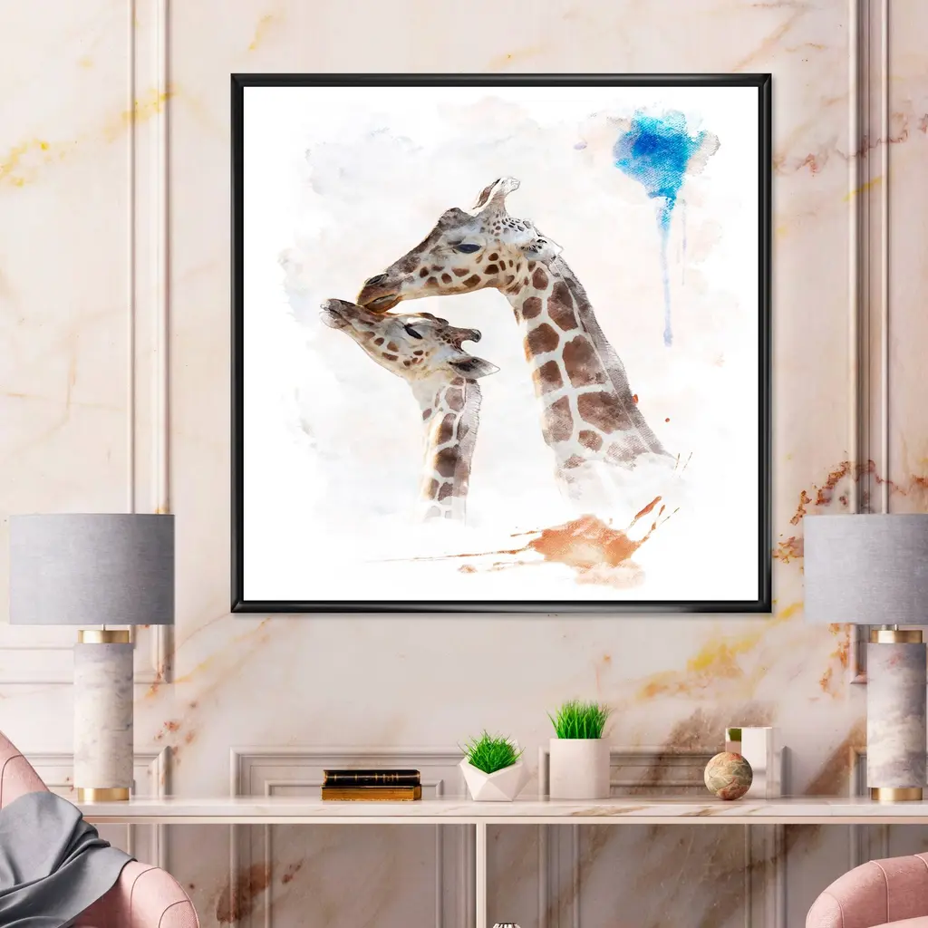 This beautiful Portrait Of Two Giraffes Framed Canvas Art is printed using the highest quality fade-resistant ink on canvas. Every one of our fine art giclee canvas prints is printed on premium quality canvas, using the finest quality inks which will not fade over time. Each giclee print is stretched tightly over a 1-inch wood sub frame ensuring the canvas is taught and does not buckle. The canvas print is inserted into a wood floating frame. All of our Framed canvas prints are carefully packaged with corner protection, fragile labeling and sturdy boxes to ensure safe delivery. Every framed canvas print arrives ready to hang on the wall, with the hanging kits included. This framed art print is available in many different color frames. Features: - Style : Traditional - Subject : Animals, Portrait - Color : Brown - Premium quality cotton canvas. - Arrives ready to hang on the wall - Easy to Hang