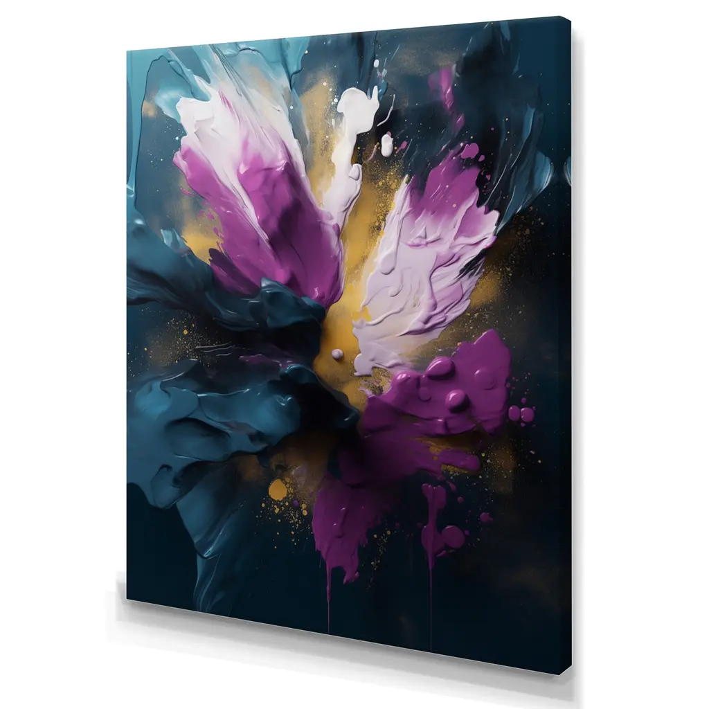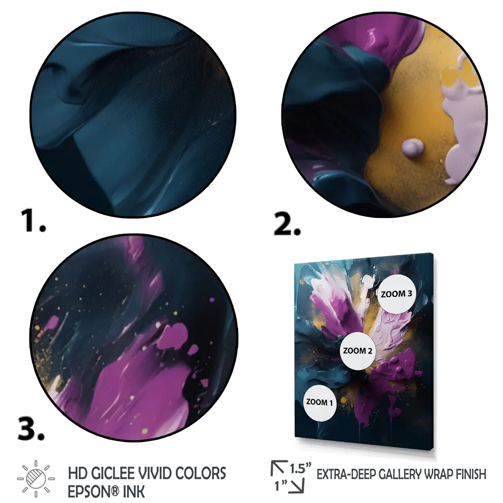 Designart "Purple And Blue Realities On Canvas I" Abstract Painting Canvas Wall Art - 16 In. Wide X 32 In. High