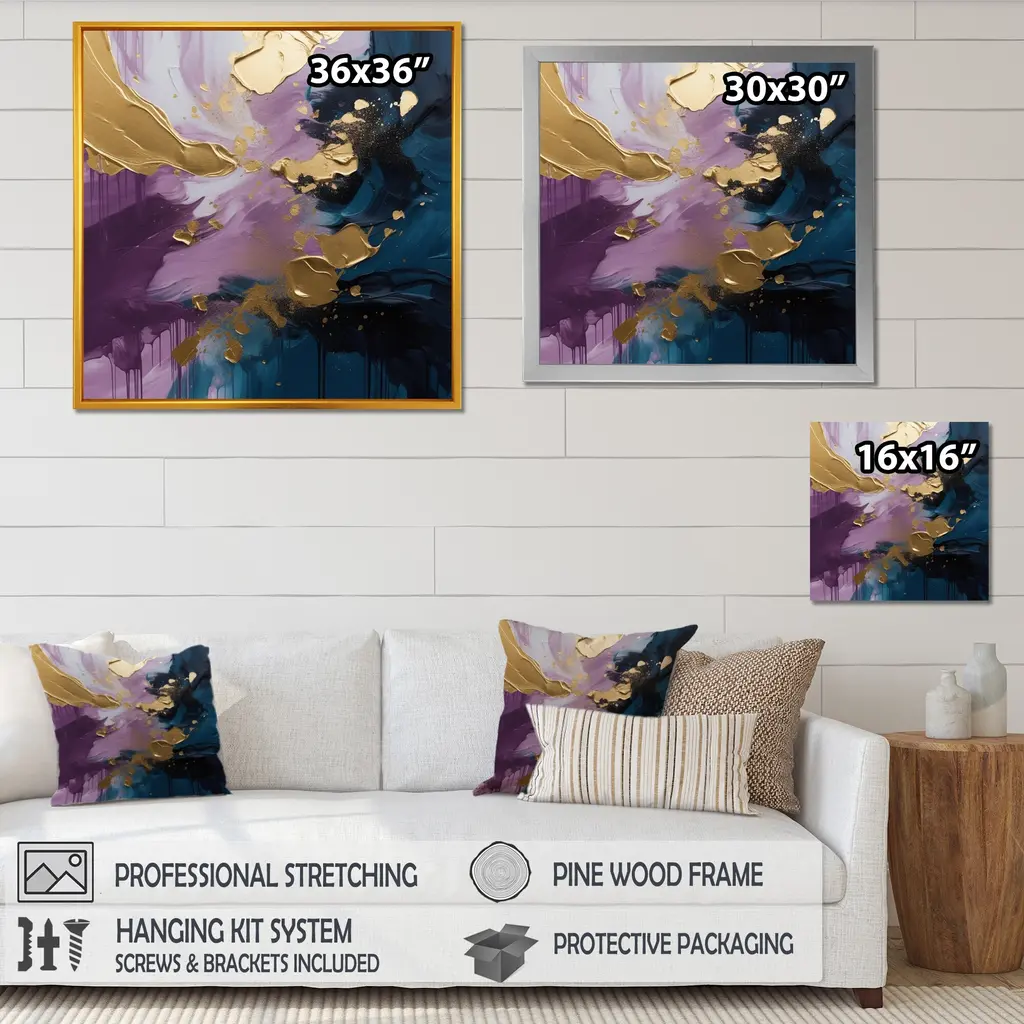 Designart "Purple And Blue Realities On Canvas Iv" Abstract Painting Framed Canvas Prints - 24 In. Wide X 24 In. High - Gold