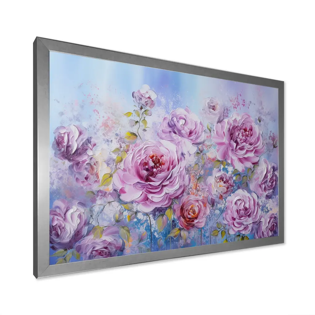 This beautiful "Purple Roses Florescence" Framed wall Art is printed using the highest quality fade resistant ink on canvas. Every one of our Floral Framed Wall art printed on premium quality cotton canvas, Each Traditional Framed Canvas print is stretched tightly over a 1-inch wood sub frame and inserted into a 1.5 Frame. All of our Framed Canvas Prints are carefully packaged with corner protection, fragile labeling and sturdy boxes to ensure safe delivery. Every framed canvas print arrives ready to hang on the wall, with the hanging kits included. This framed art print is available in many different color frames. Features: - Style : Traditional Framed Canvas - Subject : Flower Field Wall Art - Color : Pink - Premium quality cotton canvas. - Arrives ready to hang on the wall. - Frame Tickness : 1 inch - Frame Width : 1.5 inch Wide - Easy to Hang