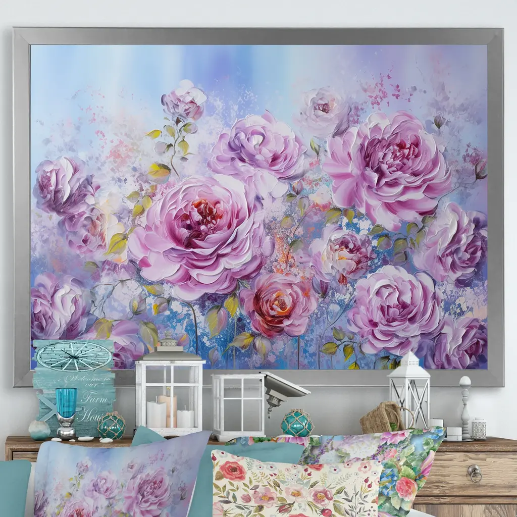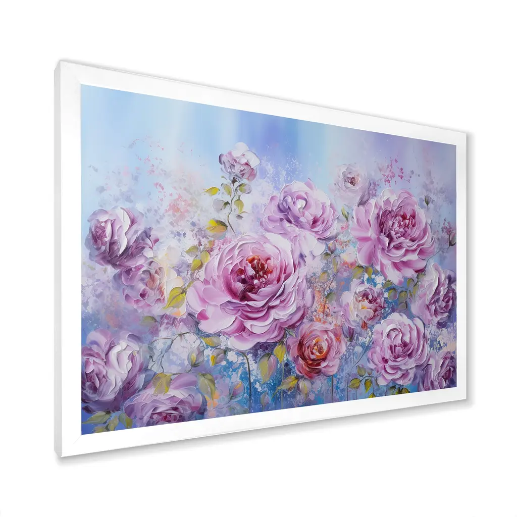 This beautiful "Purple Roses Florescence" Framed wall Art is printed using the highest quality fade resistant ink on canvas. Every one of our Floral Framed Wall art printed on premium quality cotton canvas, Each Traditional Framed Canvas print is stretched tightly over a 1-inch wood sub frame and inserted into a 1.5 Frame. All of our Framed Canvas Prints are carefully packaged with corner protection, fragile labeling and sturdy boxes to ensure safe delivery. Every framed canvas print arrives ready to hang on the wall, with the hanging kits included. This framed art print is available in many different color frames. Features: - Style : Traditional Framed Canvas - Subject : Flower Field Wall Art - Color : Pink - Premium quality cotton canvas. - Arrives ready to hang on the wall. - Frame Tickness : 1 inch - Frame Width : 1.5 inch Wide - Easy to Hang