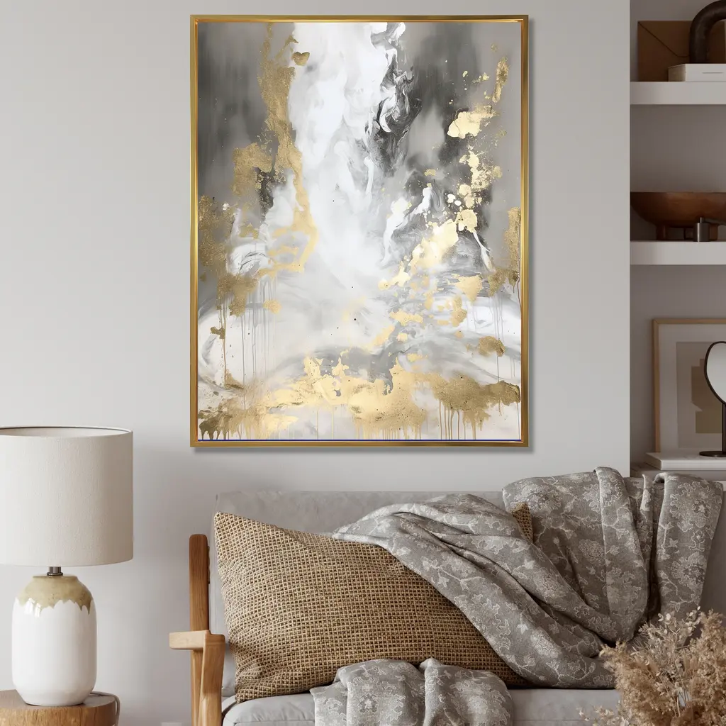 Designart "Pursuit Of Happiness I" Abstract Painting Framed Wall Art Living Room - 30 In. Wide X 40 In. High - Gold