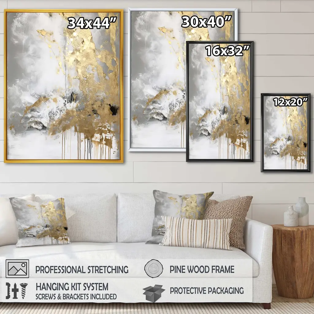 Designart "Pursuit Of Happiness Iv" Abstract Painting Framed Wall Decor - 24 In. Wide X 32 In. High - Gold