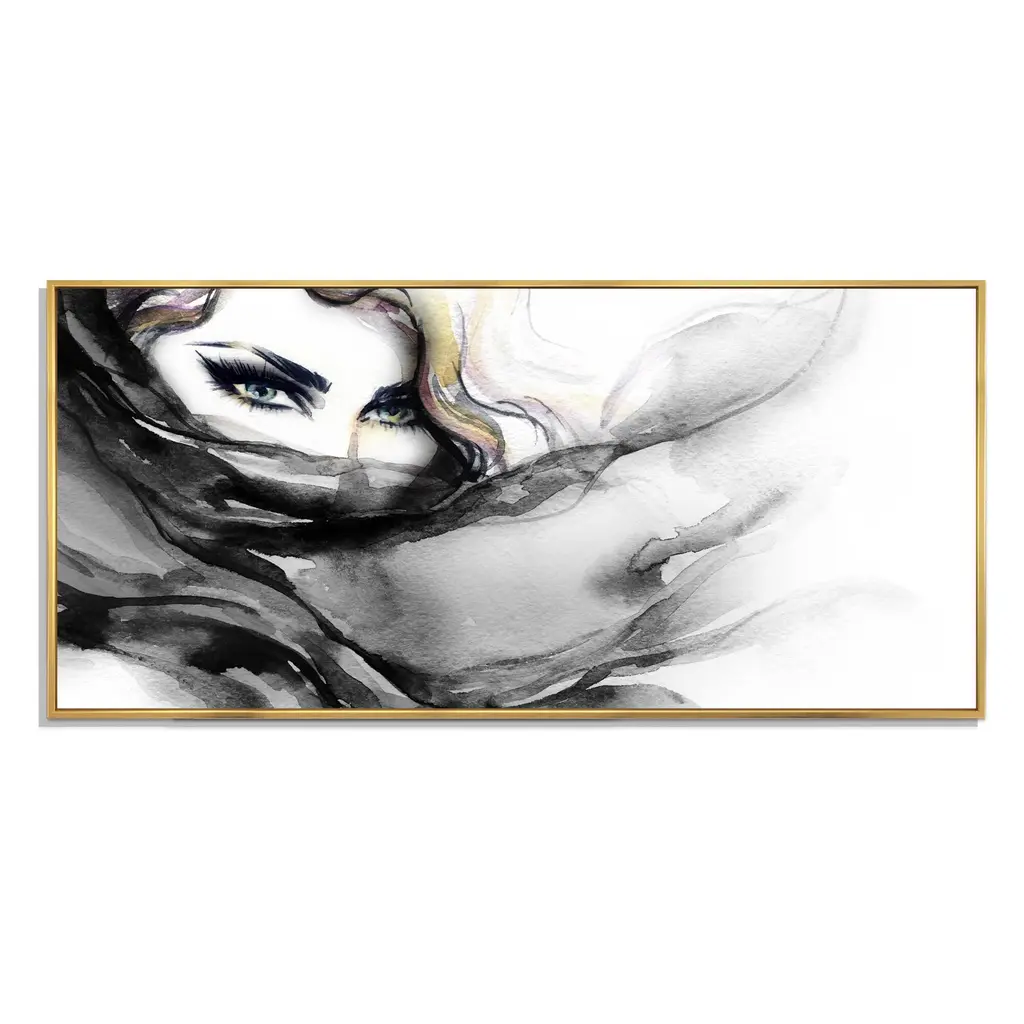Designart "Sexy Glamour Woman Portrait Iv" Fashion Framed Canvas Wall Art - 32 In. Wide X 16 In. High - Black