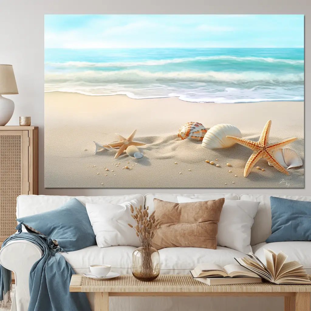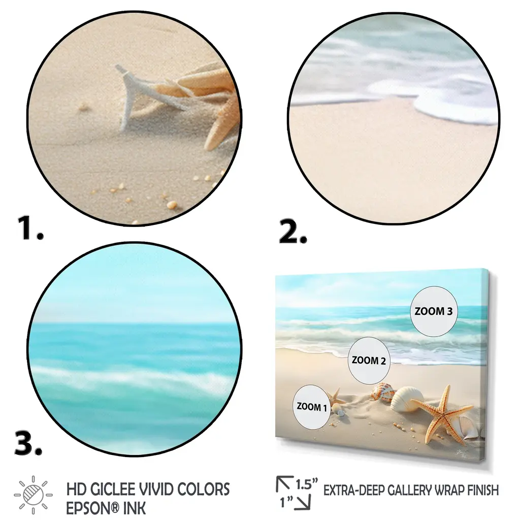 This beautiful Starfish And Seashells I Canvas Art is printed using the highest quality fade resistant ink on canvas. Every one of our fine art giclee canvas prints is printed on premium quality cotton canvas, using the finest quality inks which will not fade over time. Each giclee print is stretched tightly over a 1 inch wood sub frame for small size prints or a 1.5 inch wood sub frame for large size prints (40x30 60x28 ...) ensuring the canvas is taught and does not buckle. This canvas art print is gallery-wrapped (the design continues on the sides) , giving it a real art gallery feel. All of our canvas prints are carefully packaged with plastic protection, fragile labeling and sturdy boxes to ensure a safe delivery. Every canvas print arrives ready to hang on the wall, with the hanging kits included. - Style : Modern & Contemporary - Subject : Landscapes - Color : Beige - This canvas giclee print is gallery-wrapped (the design continues on the sides) , giving it a real art gallery feel. - Premium quality cotton canvas. - Arrives ready to hang on the wall - Easy to Hang