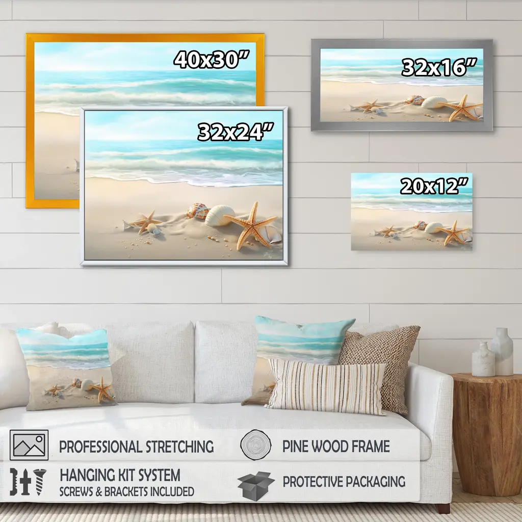 Designart "Starfish And Seashells I" Modern Landscape Beach Wall Decor - 32 In. Wide X 24 In. High