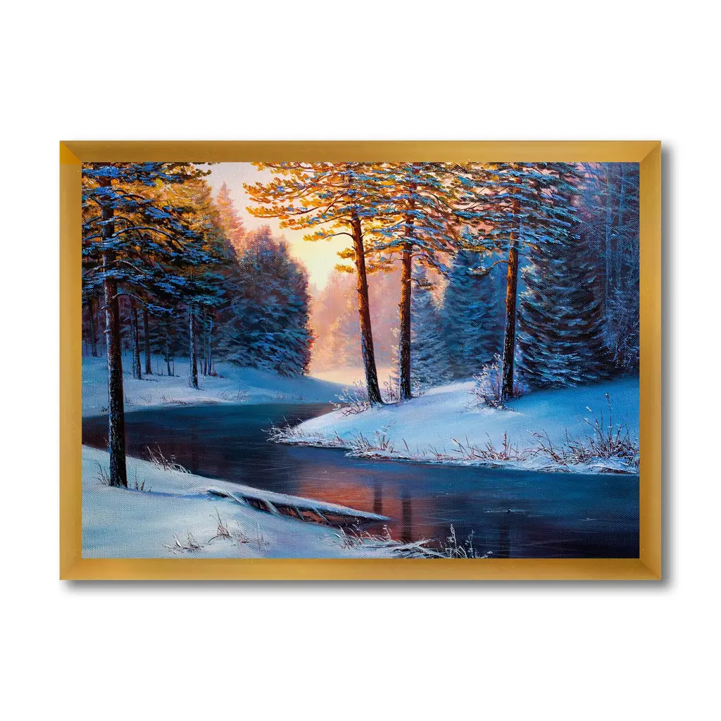 This beautiful Sunshine Through The Christmas Forest By The River Framed wall Art is printed using the highest quality fade resistant ink on canvas. Every one of our Framed Giclee Prints is printed on premium quality canvas, using the finest quality inks which will not fade over time and then mounted and framed on a 1.5 inch wide frame. This framed art print is available in many different color frames. All of our framed art prints are carefully packaged with corner protectors, fragile labeling, and sturdy boxes to ensure a safe delivery. Every framed art arrives ready to hang on the wall, with the hanging kit included. Features: - Style : Lake House - Subject : Landscapes - Color : White - Premium quality cotton canvas mounted. - Available in several frame colors. - Arrives with instructions and hanging kit