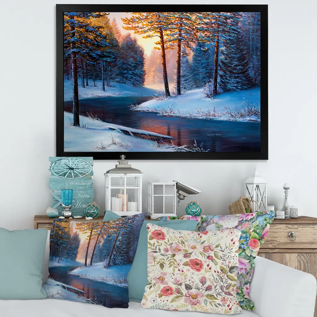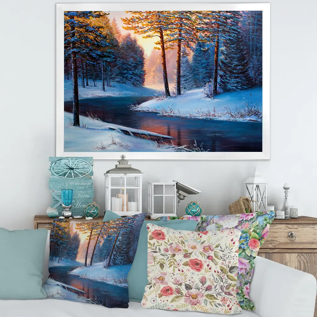 This beautiful Sunshine Through The Christmas Forest By The River Framed wall Art is printed using the highest quality fade resistant ink on canvas. Every one of our Framed Giclee Prints is printed on premium quality canvas, using the finest quality inks which will not fade over time and then mounted and framed on a 1.5 inch wide frame. This framed art print is available in many different color frames. All of our framed art prints are carefully packaged with corner protectors, fragile labeling, and sturdy boxes to ensure a safe delivery. Every framed art arrives ready to hang on the wall, with the hanging kit included. Features: - Style : Lake House - Subject : Landscapes - Color : White - Premium quality cotton canvas mounted. - Available in several frame colors. - Arrives with instructions and hanging kit