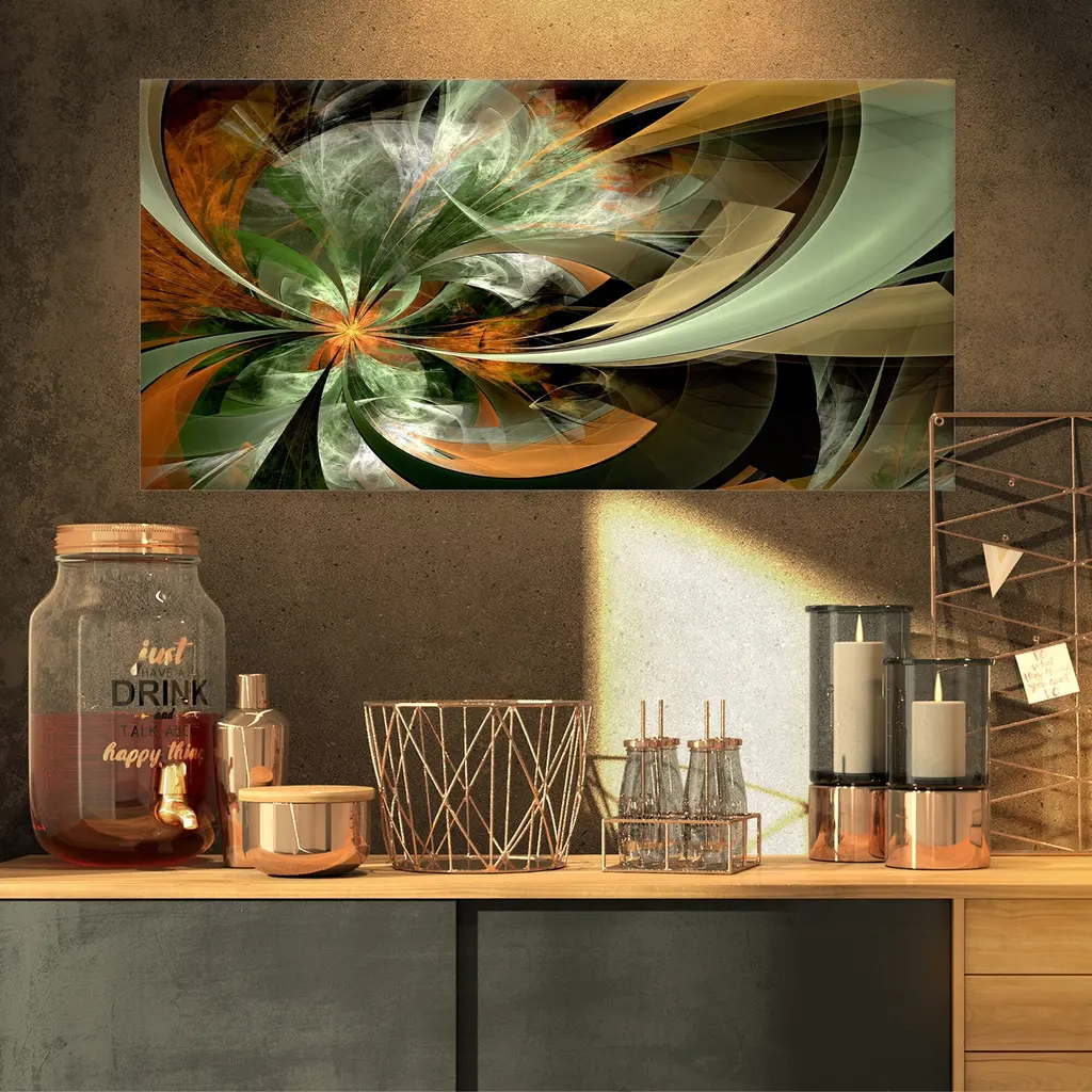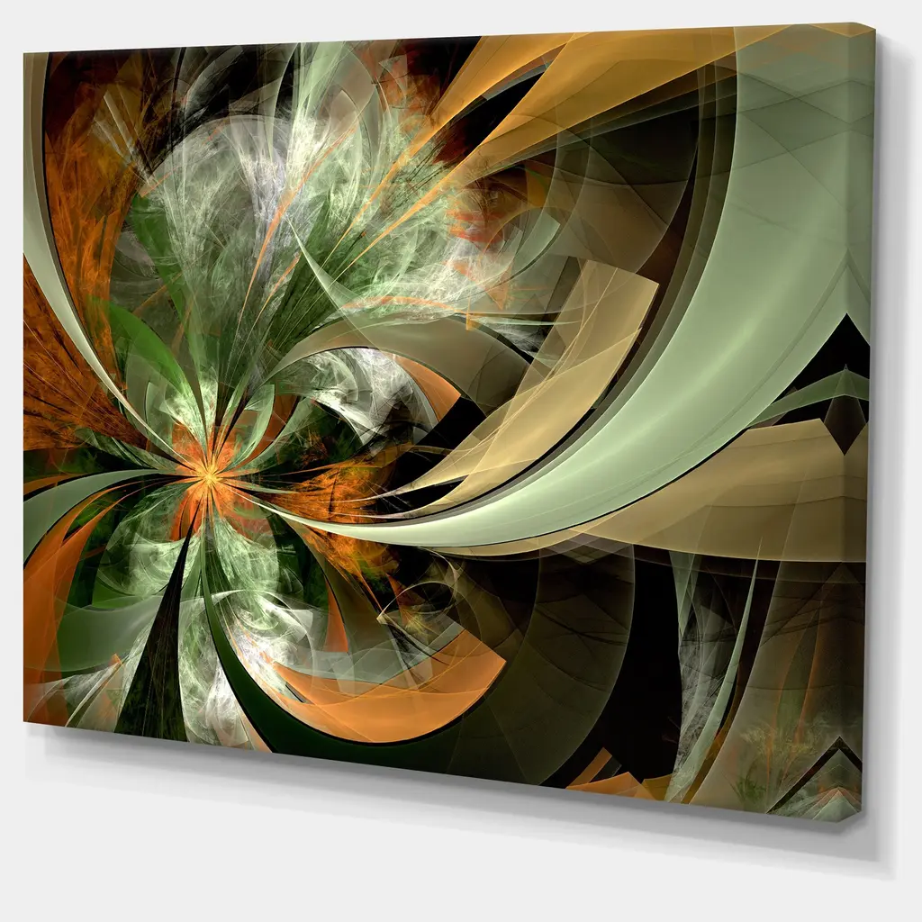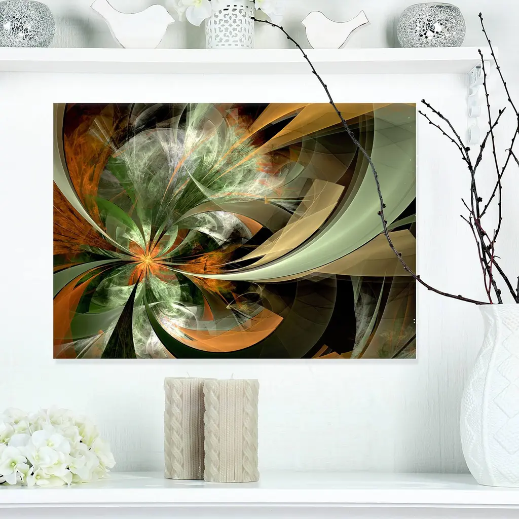 Designart "Symmetrical Orange Green Fractal Flower" Floral Canvas Art Print - 40 In. Wide X 20 In. High
