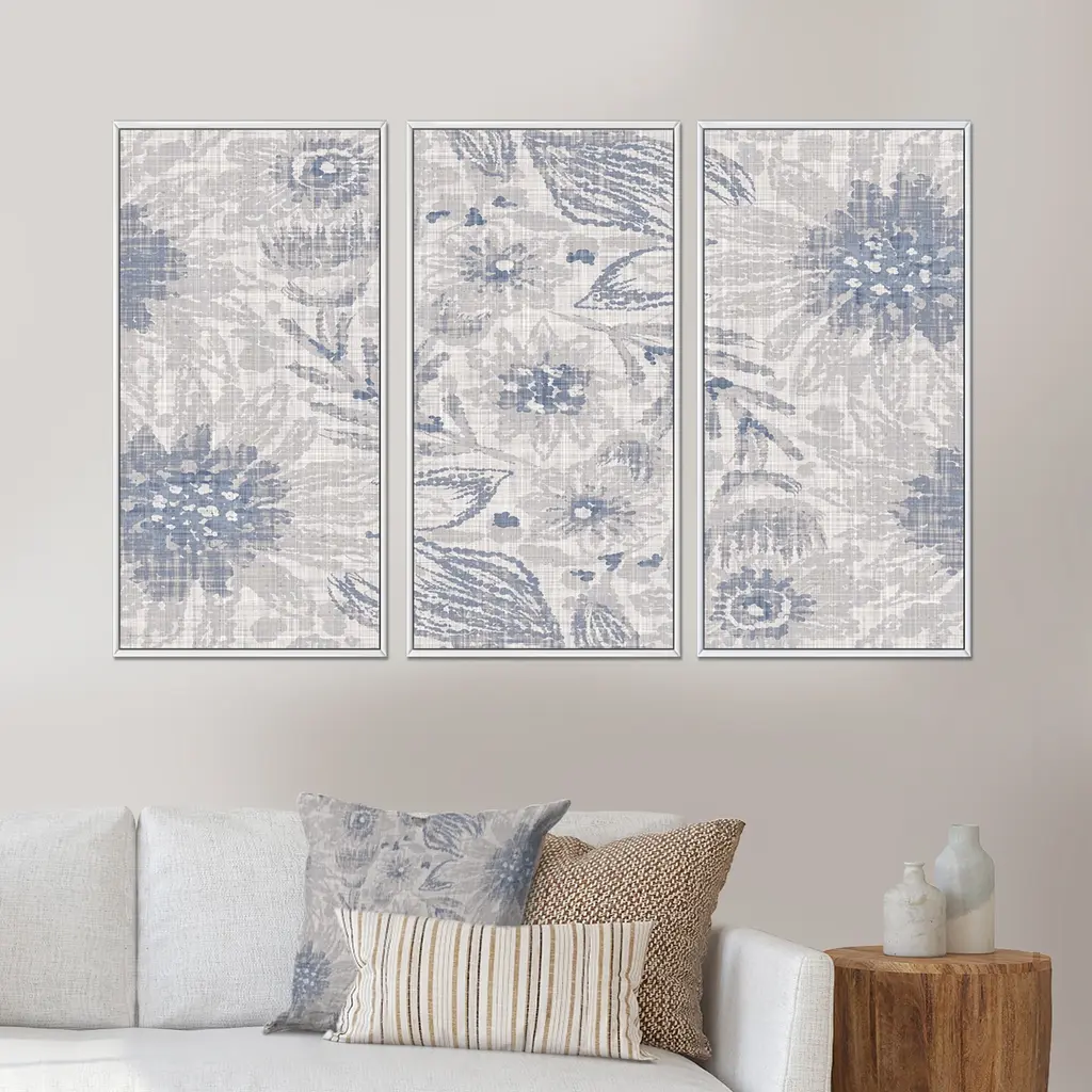 Designart "The Modern Grey Forest Iv" Farmhouse Framed Canvas Wall Art Print Set Of 3 - 4 Colors Of Frames - 36 In. Wide X 20 In. High - 3 Panels - White